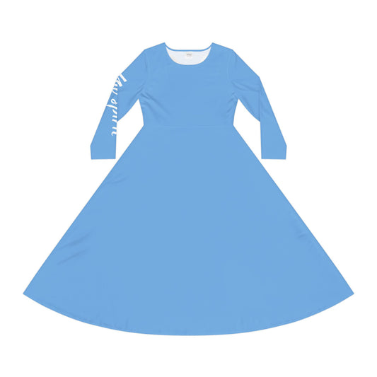 Women's Dance Dress - Elegant Angel Wing Long Sleeve in Blue
