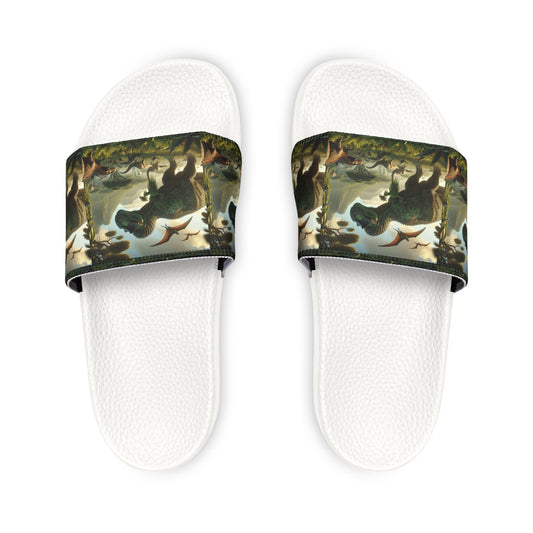 Youth Dinosaur Print Sandals - Removable Strap Slip-Ons for Summer Fun