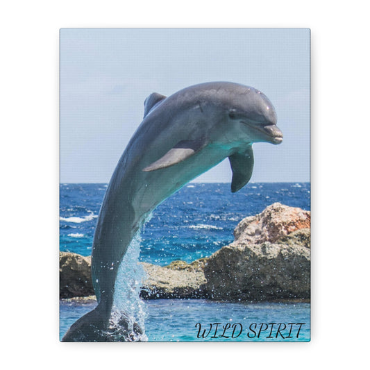 Canvas Print Dolphin Jumping Out of Water on Sunny Day