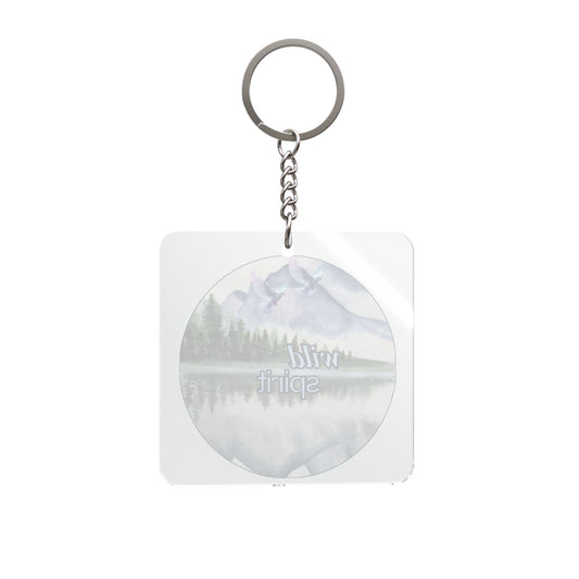 Wild Spirit Square Keychain — Mountain Lake Reflection Travel Charm