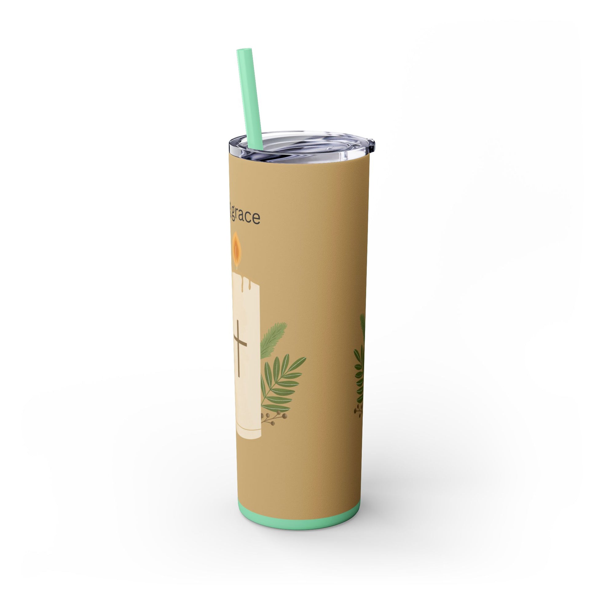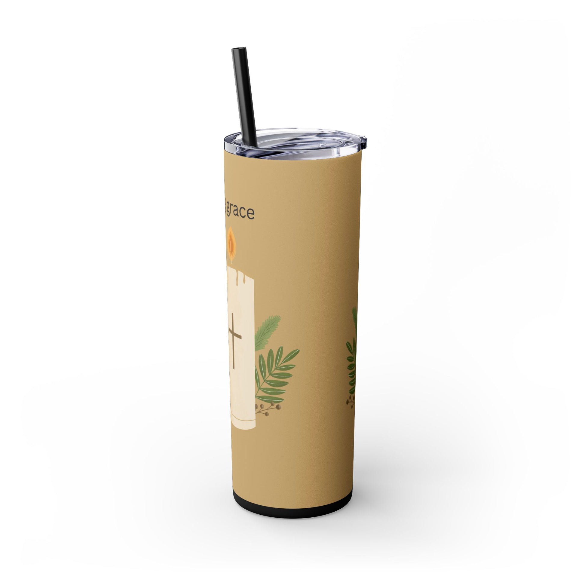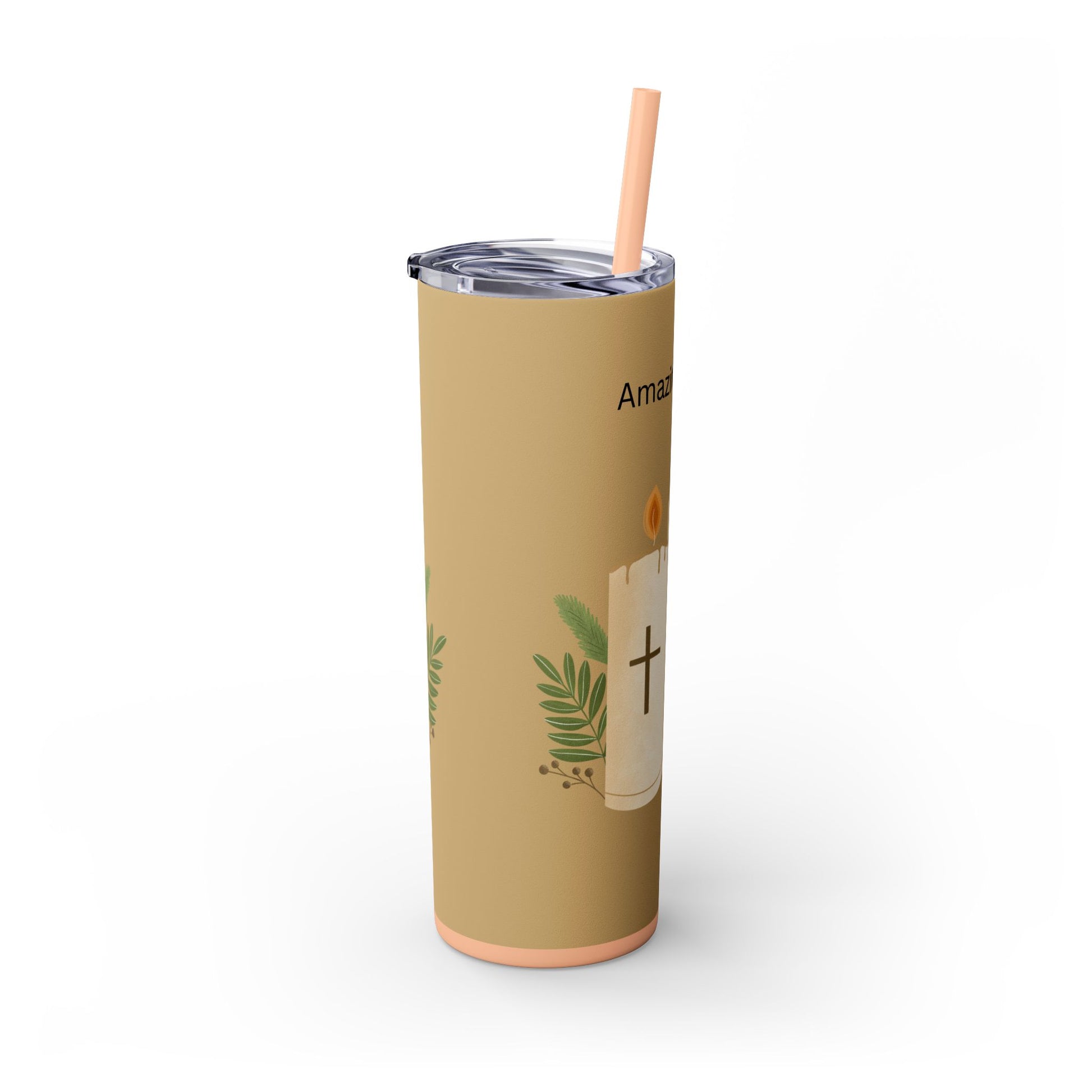 A faith-inspired skinny tumbler with lid, offering a feeling of tranquility and positivity. Perfect for those who find solace in their faith and enjoy sipping on their favorite beverage. Ideal for gift-giving during religious holidays and celebrations.