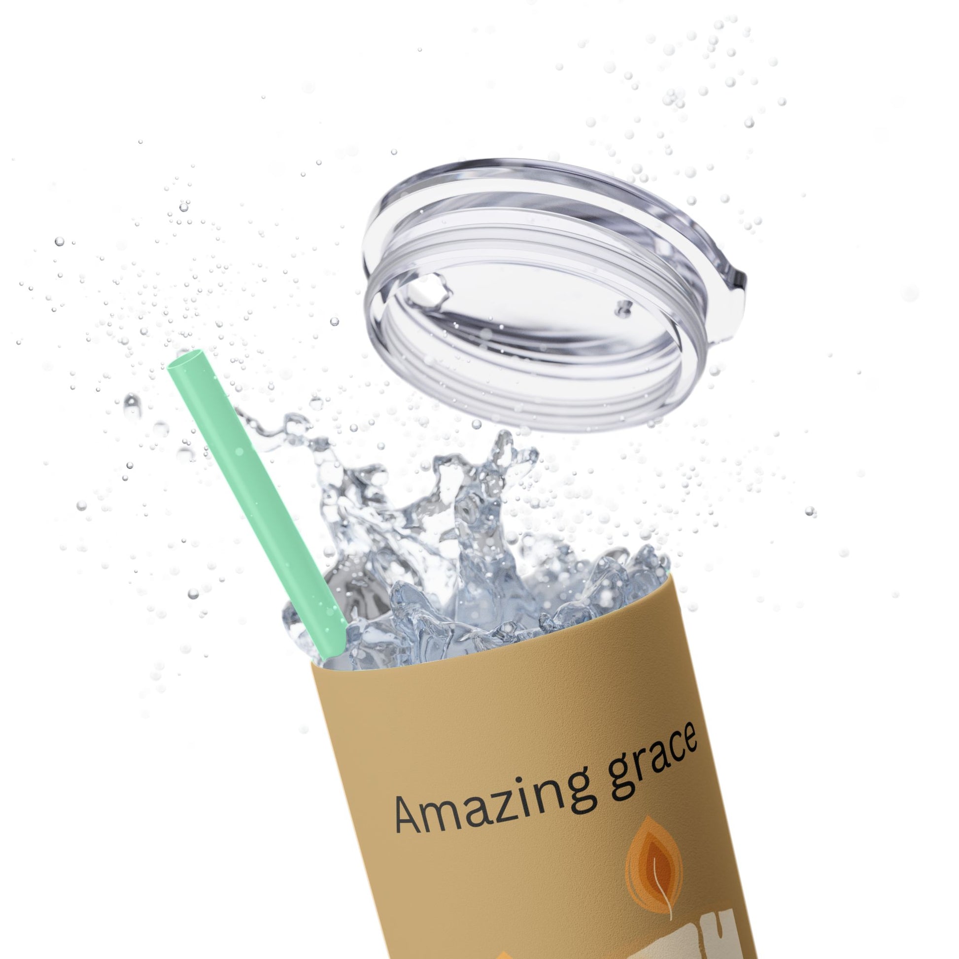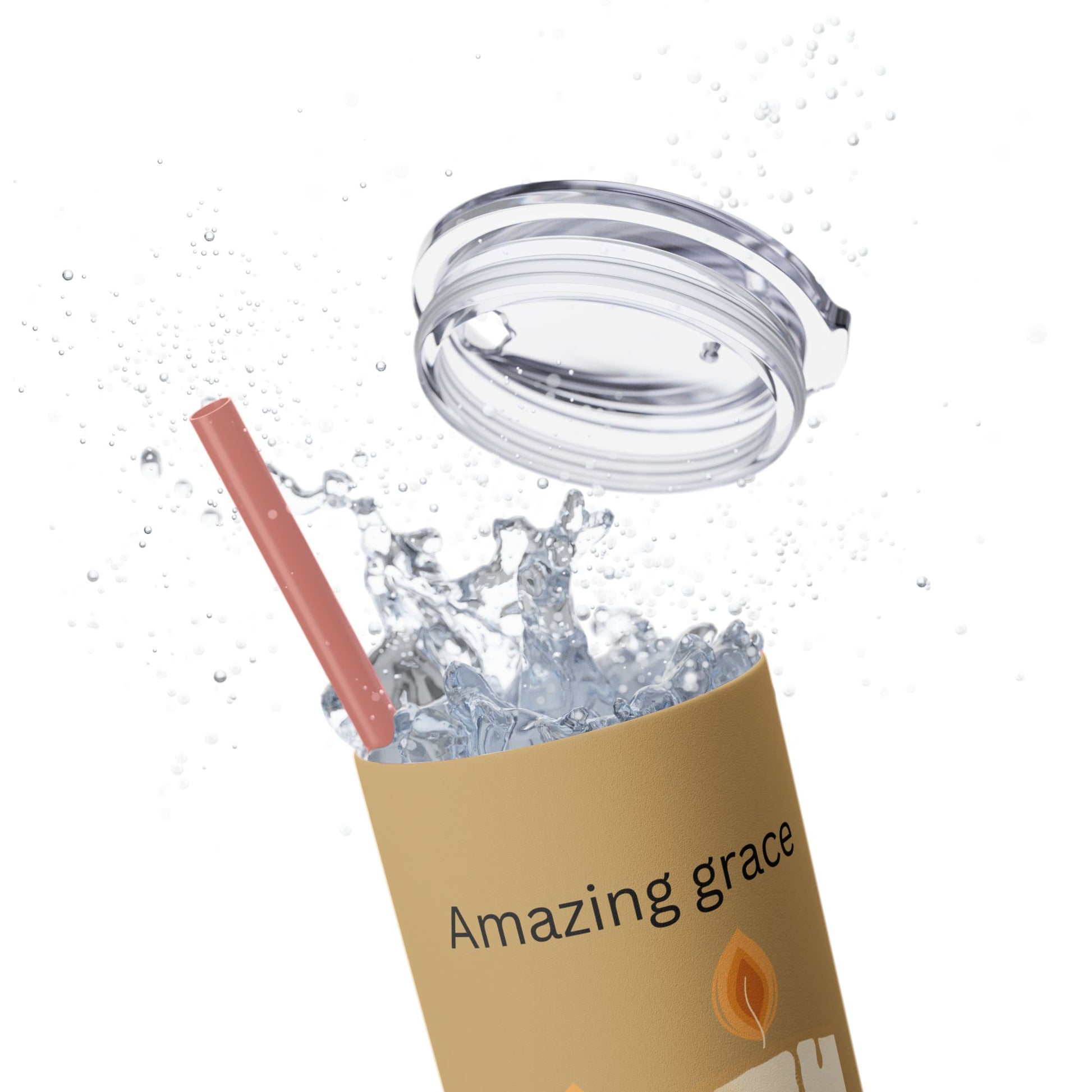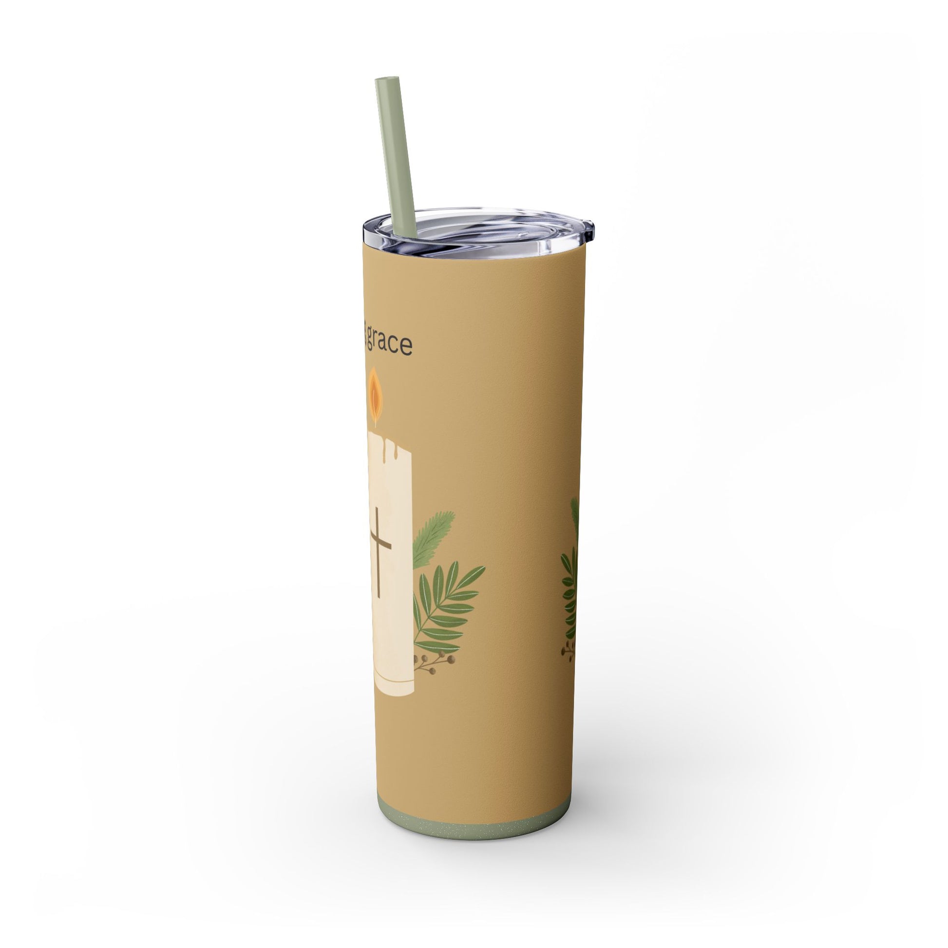 A faith-inspired skinny tumbler with lid, offering a feeling of tranquility and positivity. Perfect for those who find solace in their faith and enjoy sipping on their favorite beverage. Ideal for gift-giving during religious holidays and celebrations.