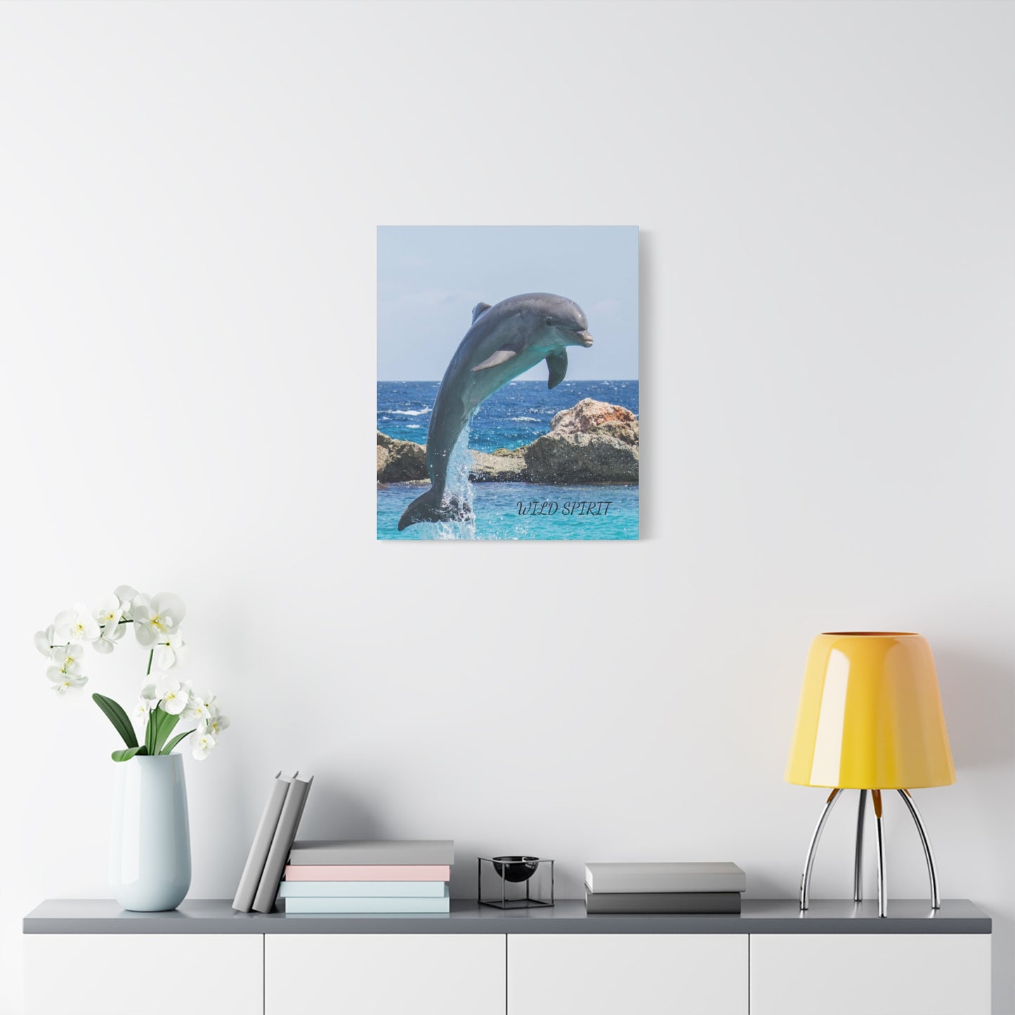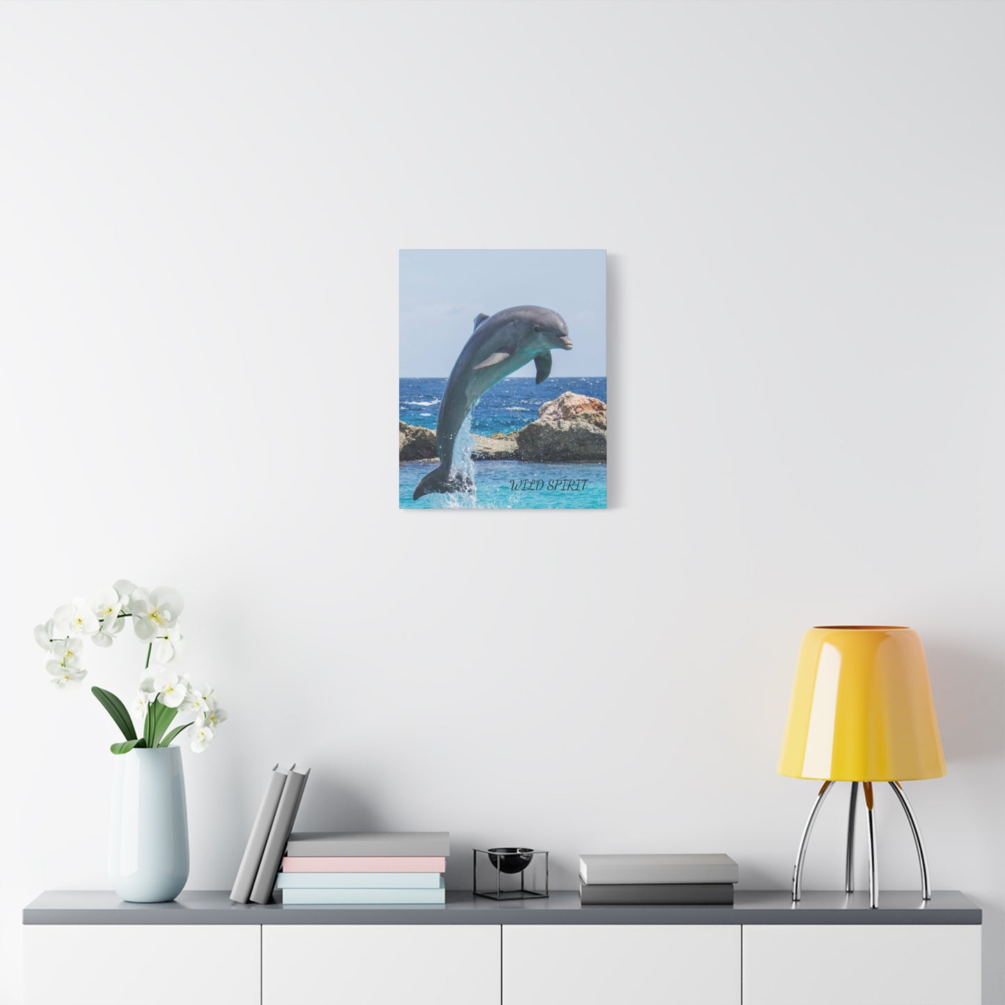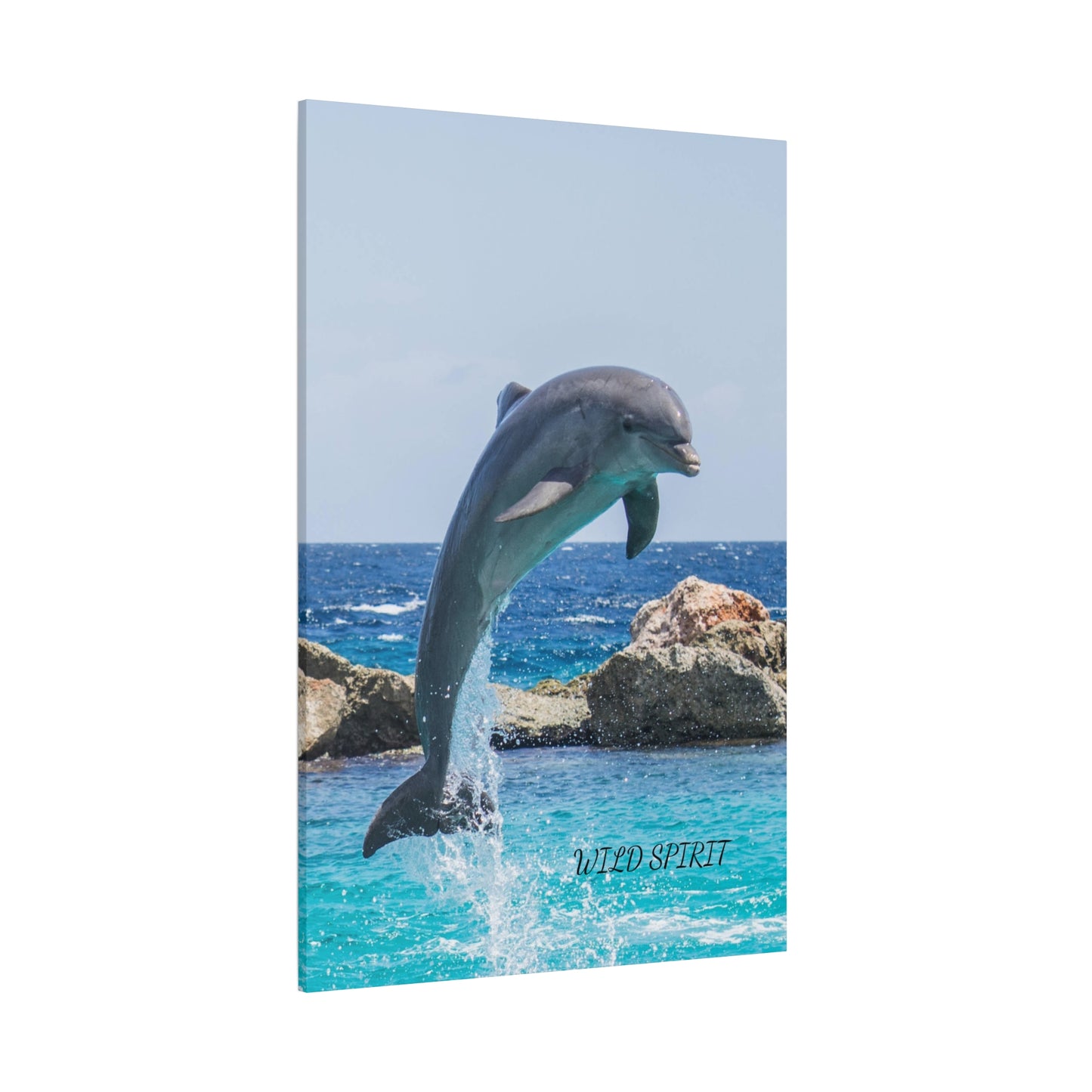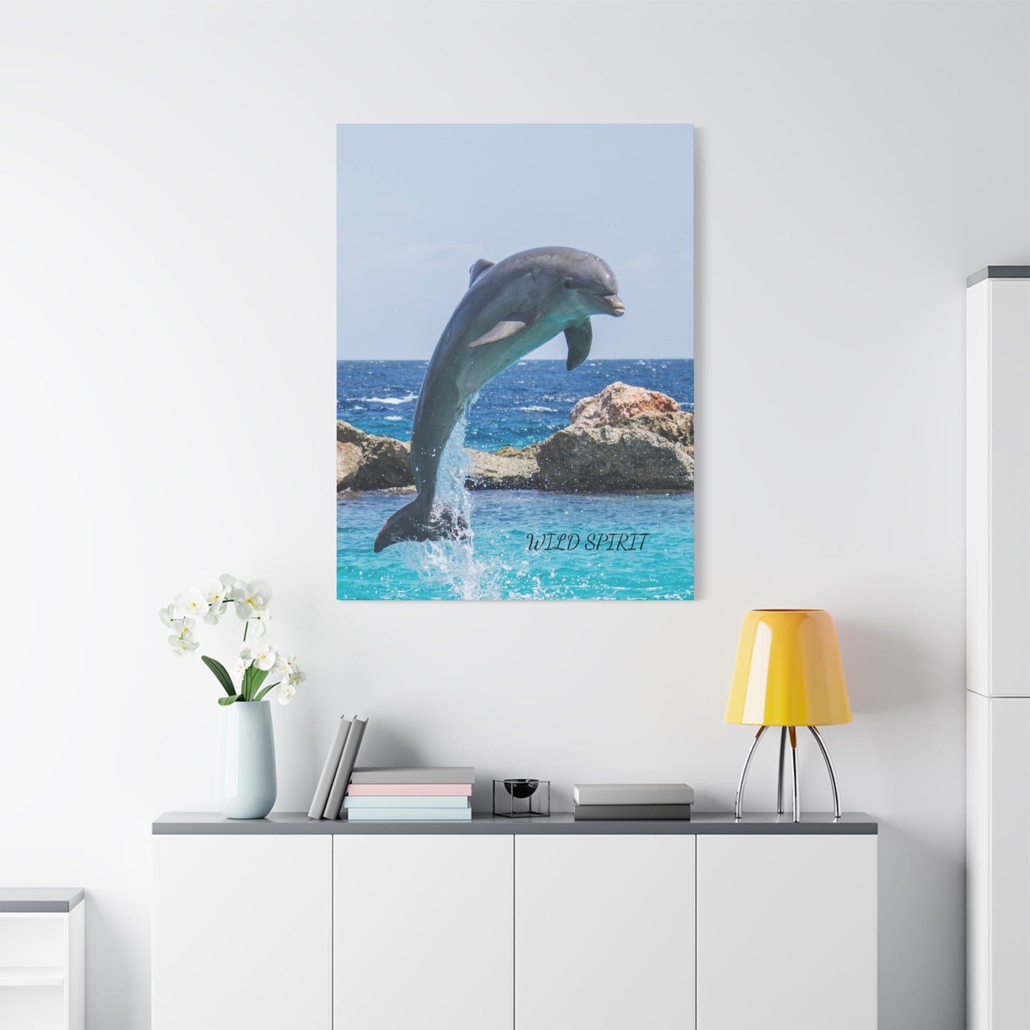 Bring the calming and playful energy of a dolphin jumping out of the water on a sunny day into your home with this matte canvas print. Perfect for ocean lovers and beach enthusiasts, this artwork will add a touch of nature to any room. Ideal for gifting on birthdays, housewarmings, or any special occasion.