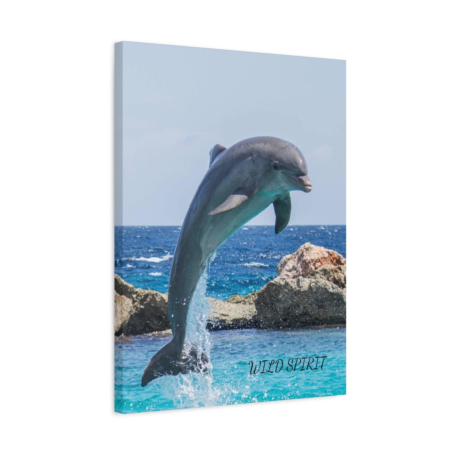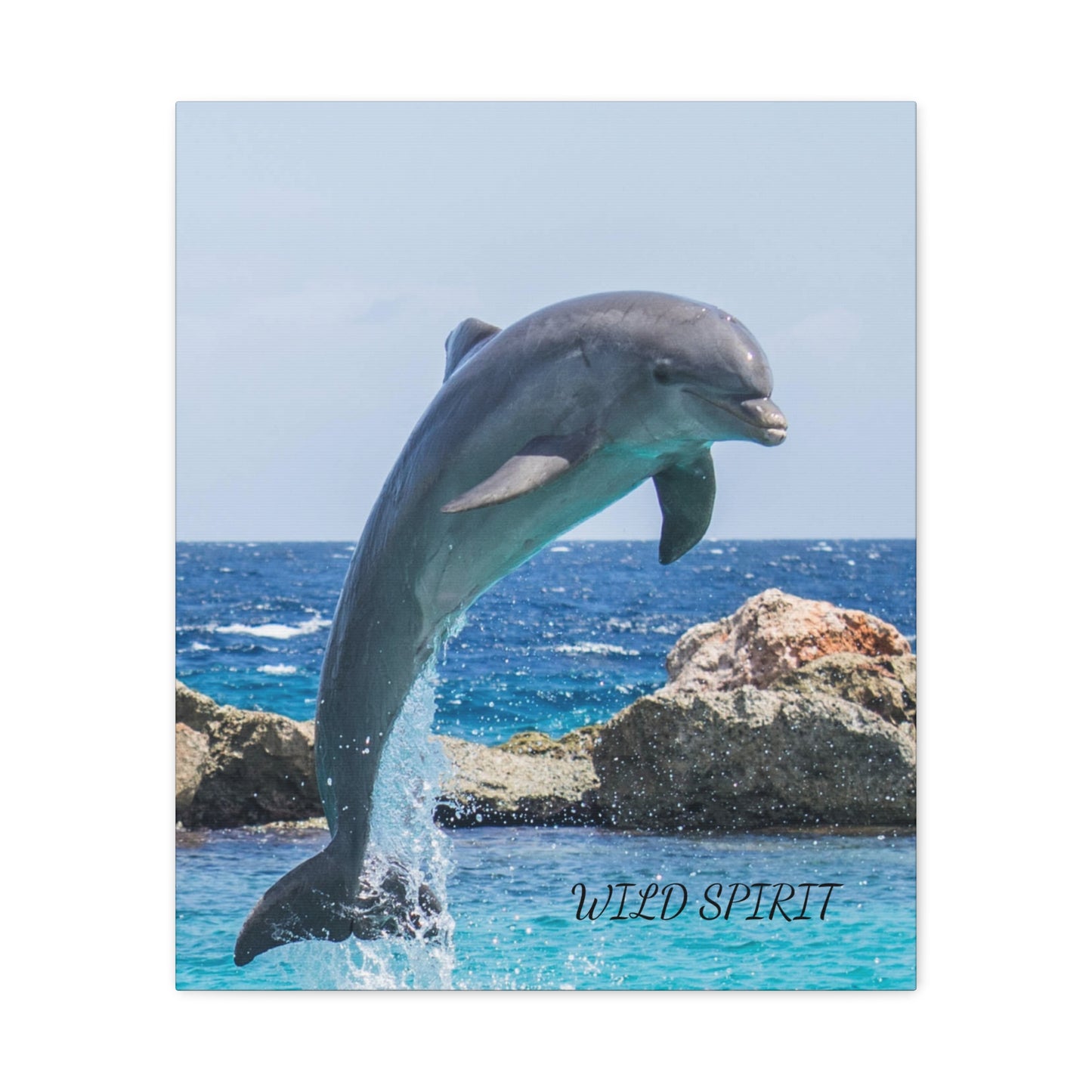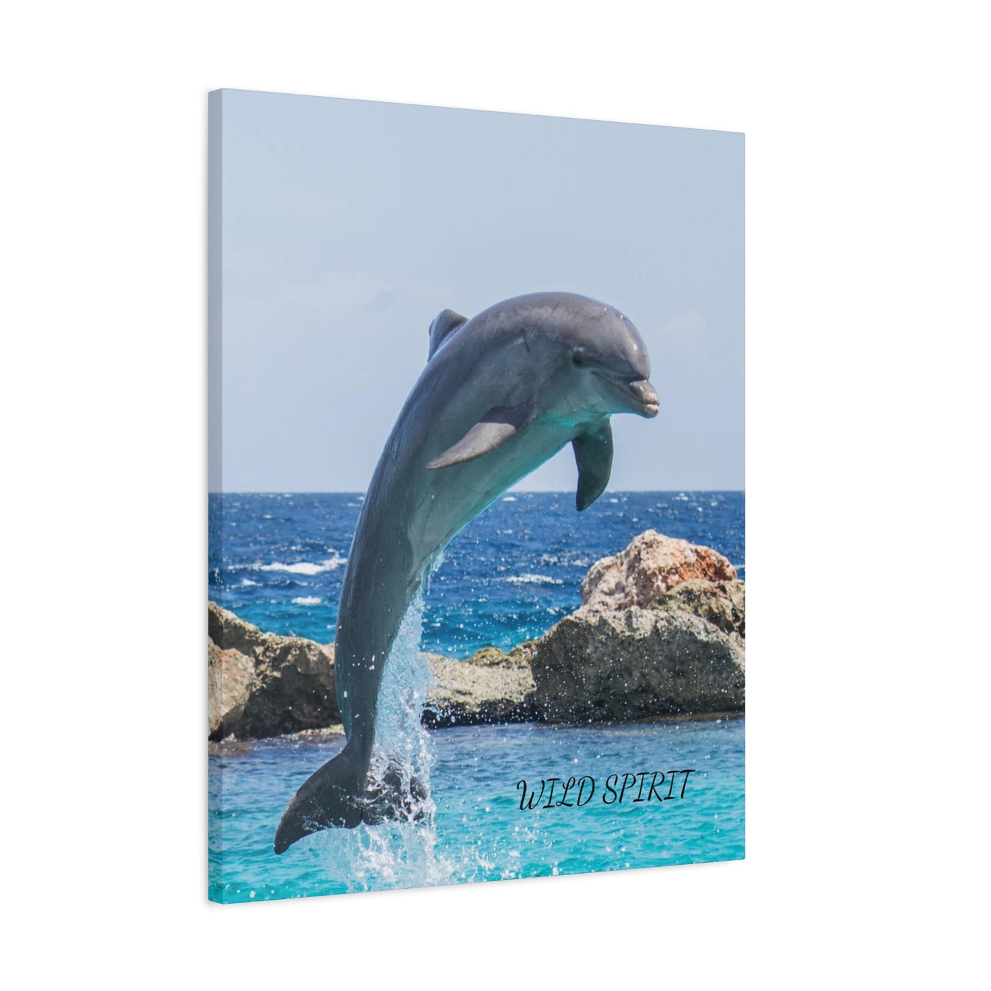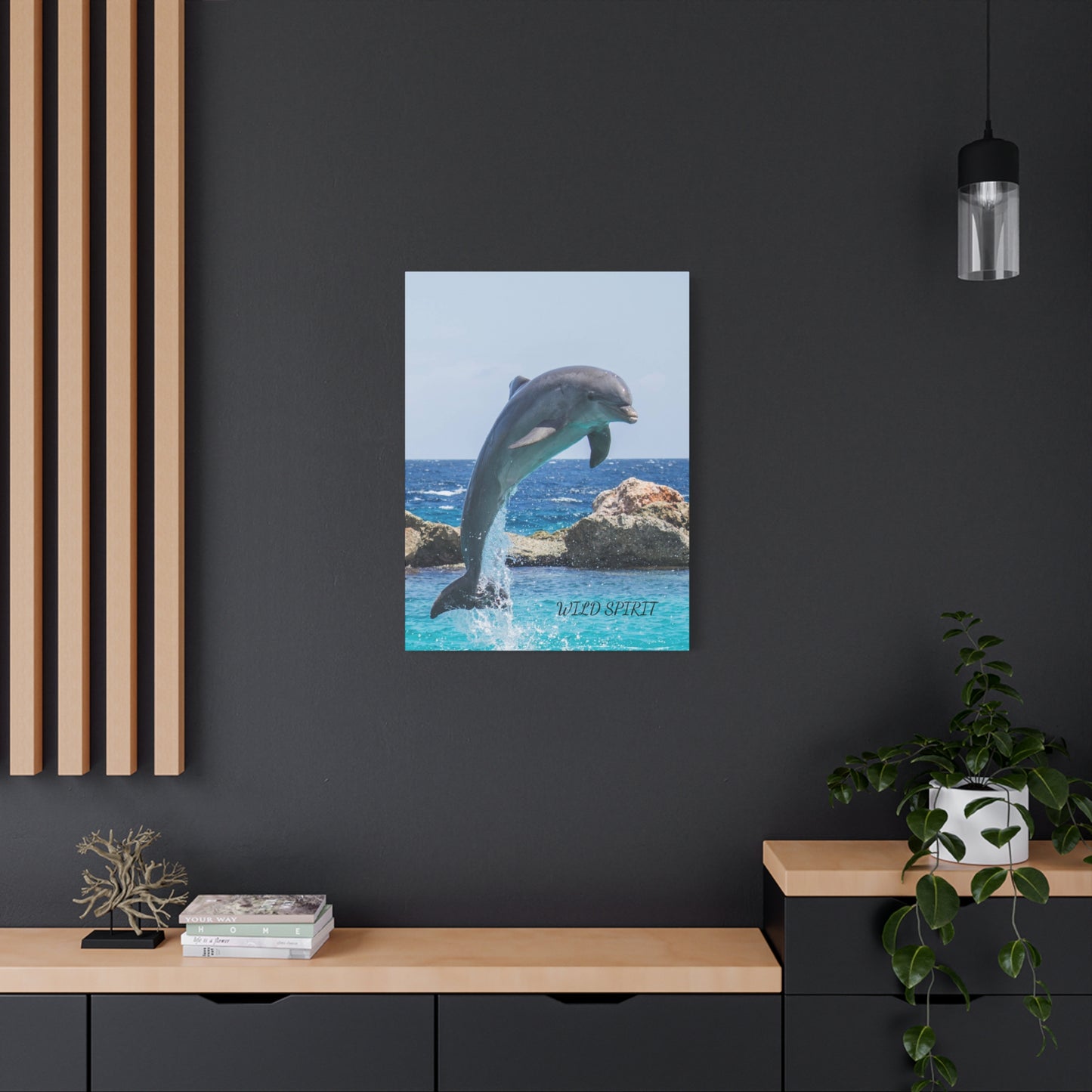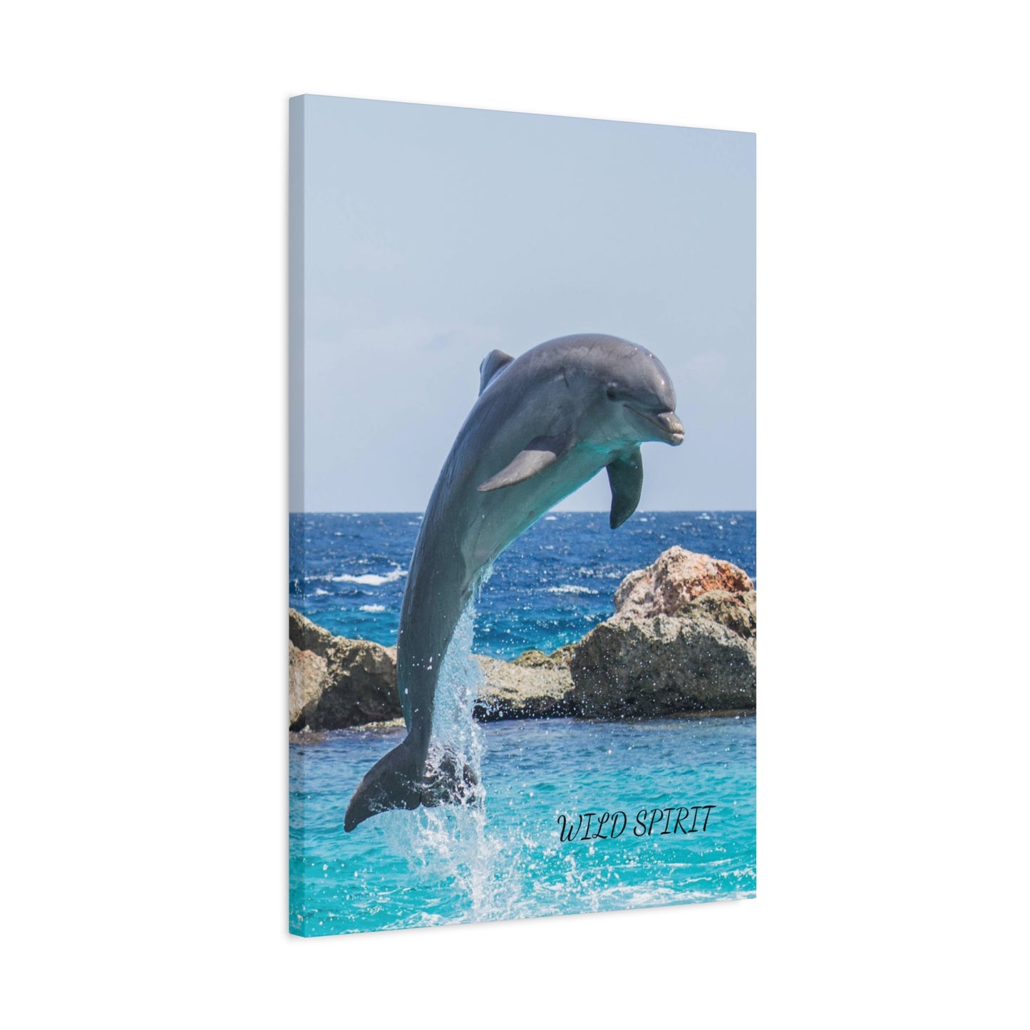 Bring the calming and playful energy of a dolphin jumping out of the water on a sunny day into your home with this matte canvas print. Perfect for ocean lovers and beach enthusiasts, this artwork will add a touch of nature to any room. Ideal for gifting on birthdays, housewarmings, or any special occasion.