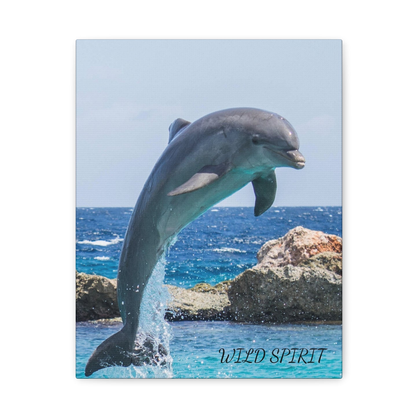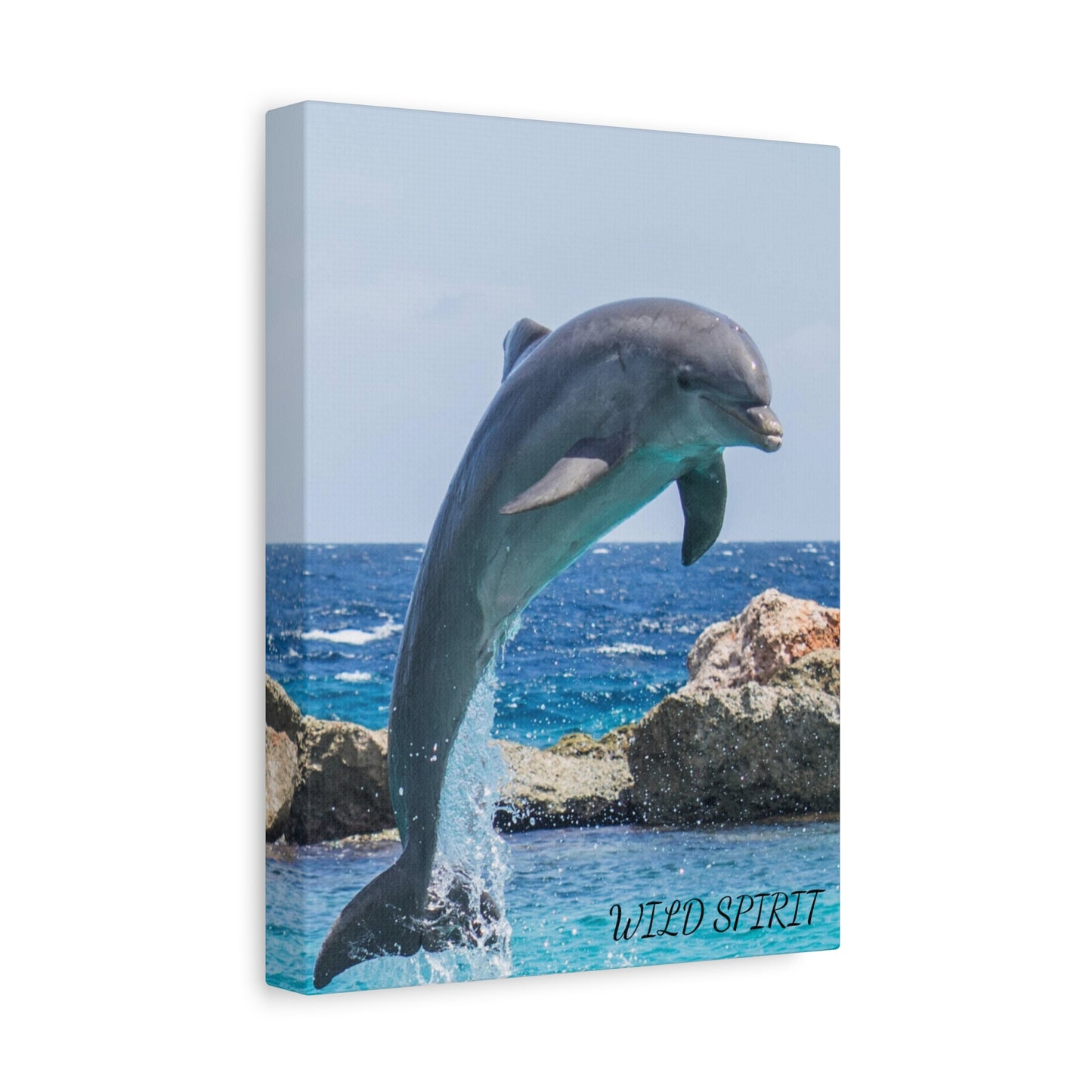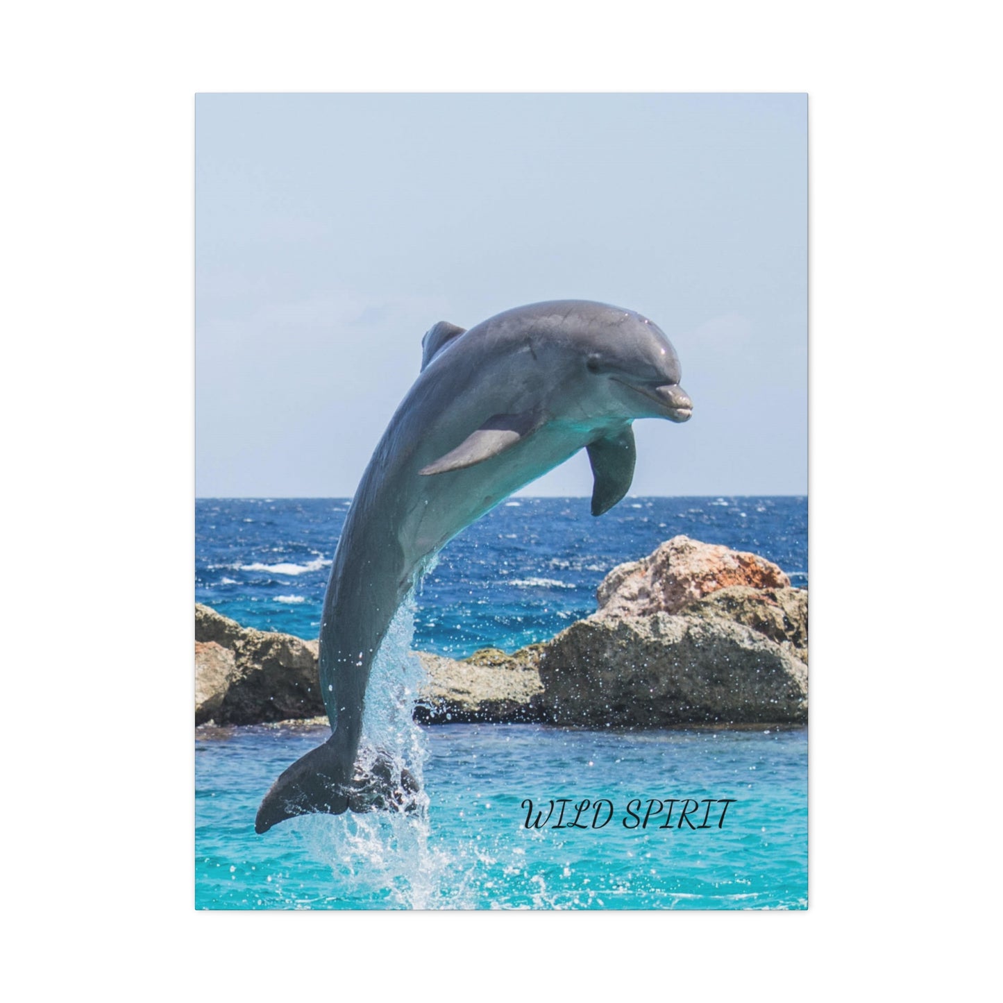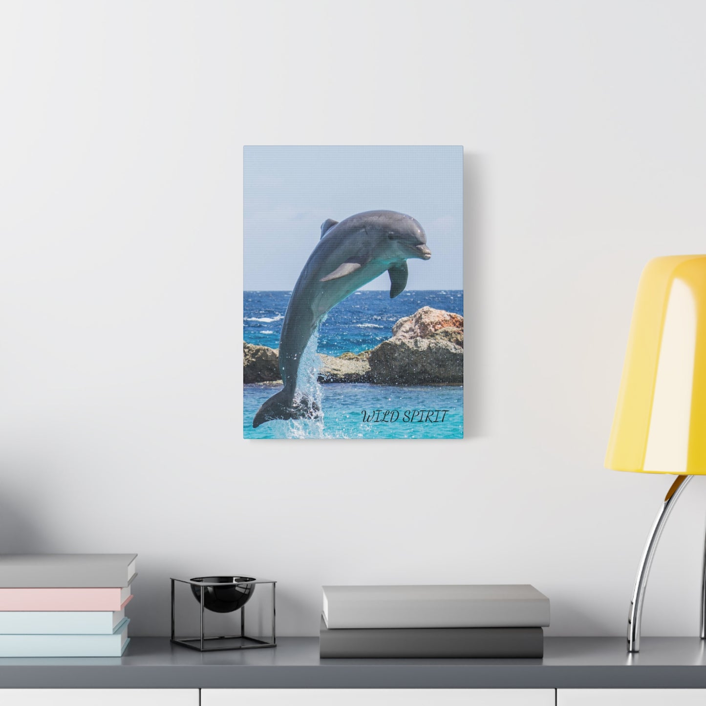 Bring the calming and playful energy of a dolphin jumping out of the water on a sunny day into your home with this matte canvas print. Perfect for ocean lovers and beach enthusiasts, this artwork will add a touch of nature to any room. Ideal for gifting on birthdays, housewarmings, or any special occasion.