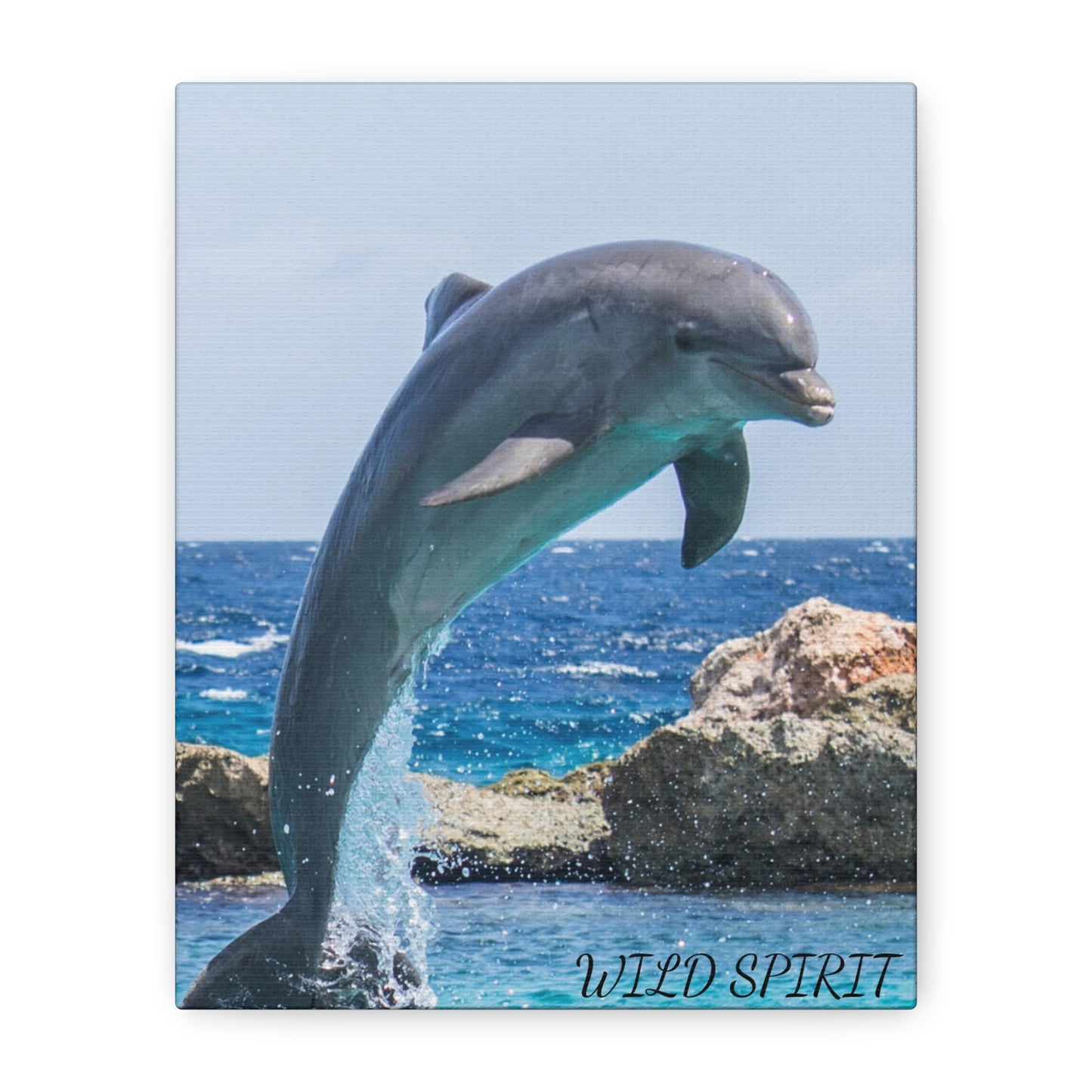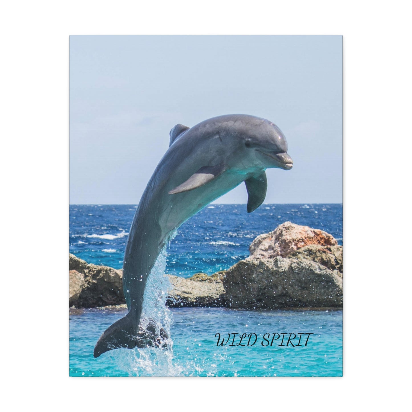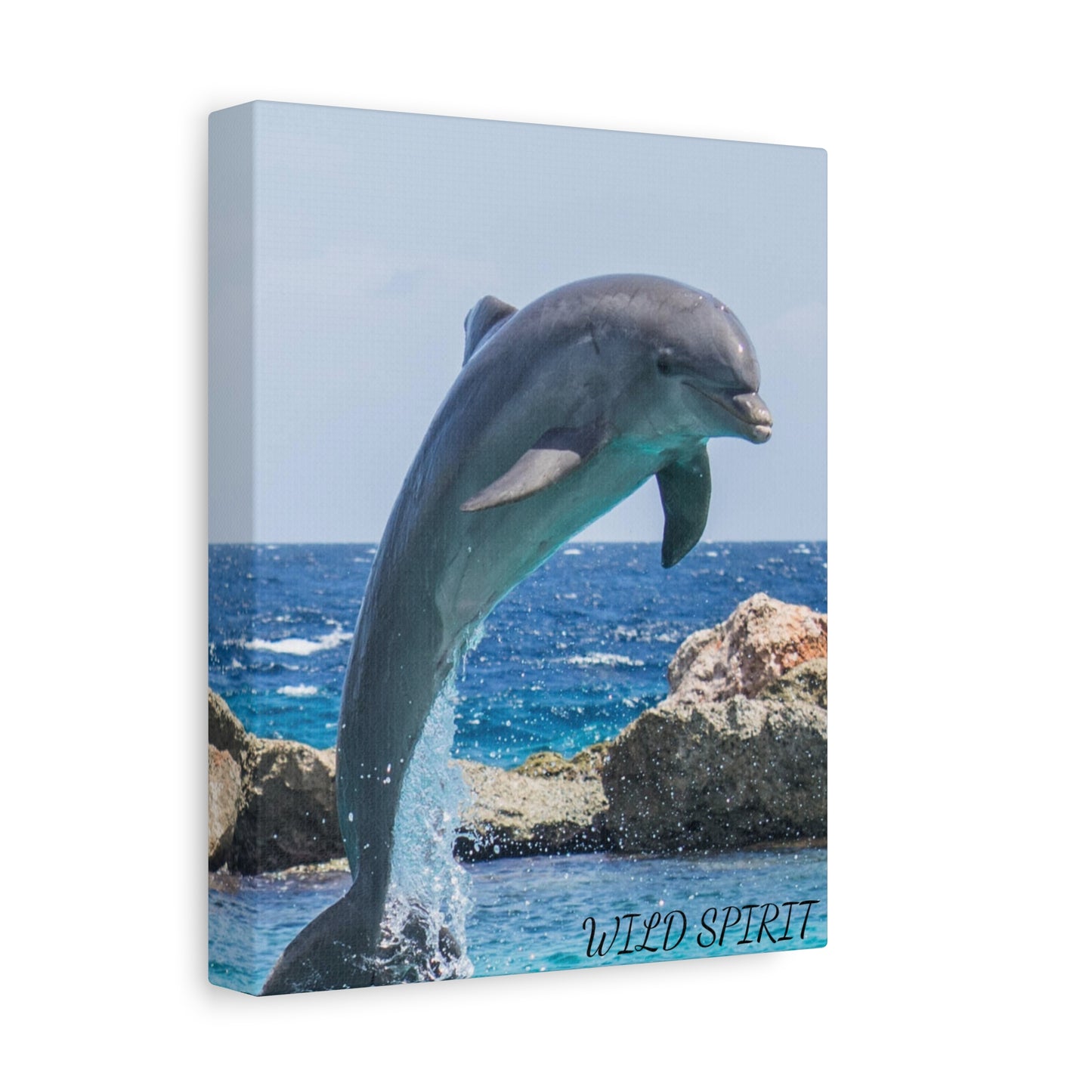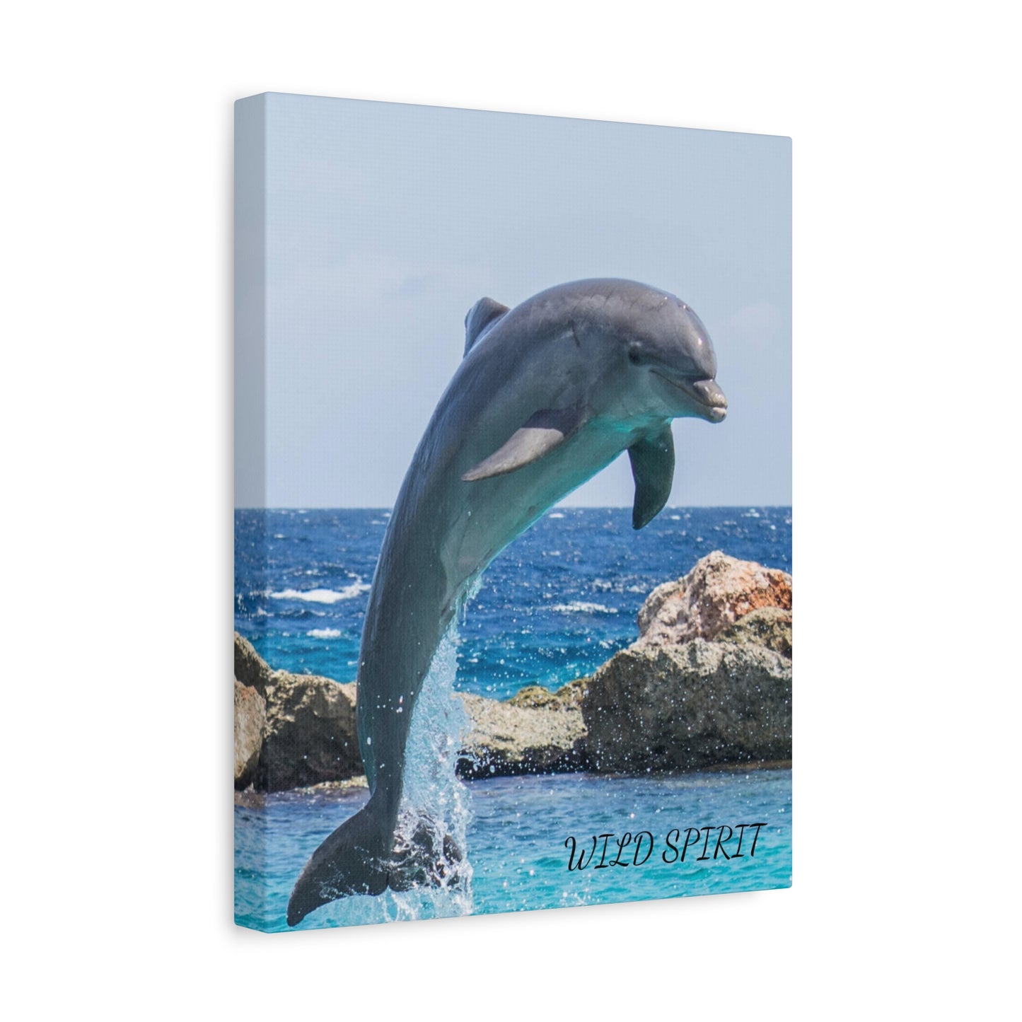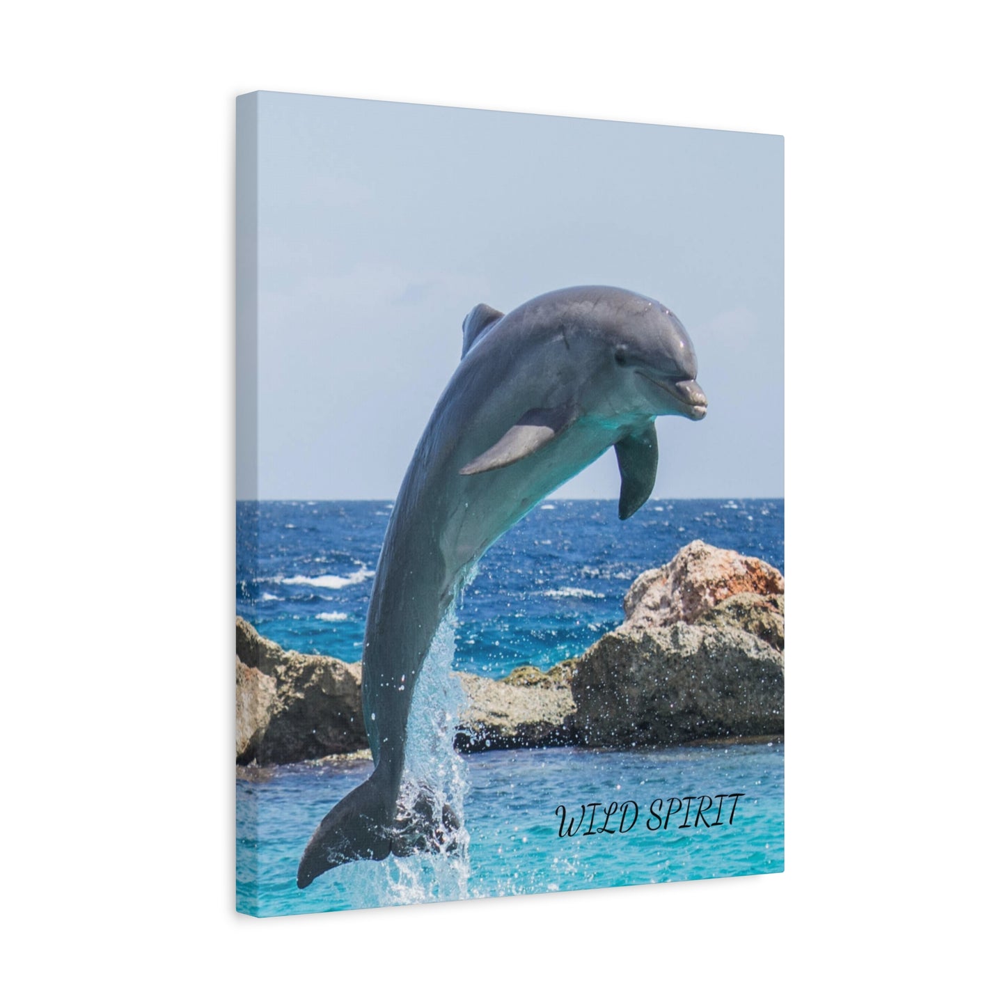 Bring the calming and playful energy of a dolphin jumping out of the water on a sunny day into your home with this matte canvas print. Perfect for ocean lovers and beach enthusiasts, this artwork will add a touch of nature to any room. Ideal for gifting on birthdays, housewarmings, or any special occasion.