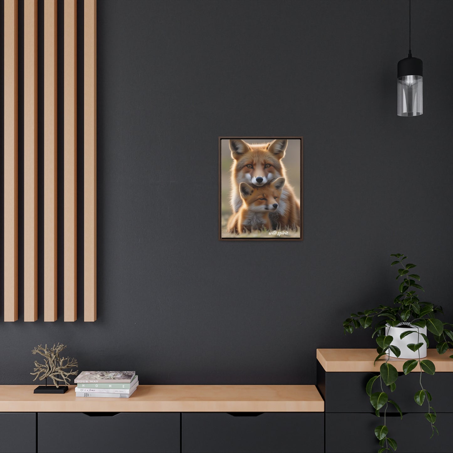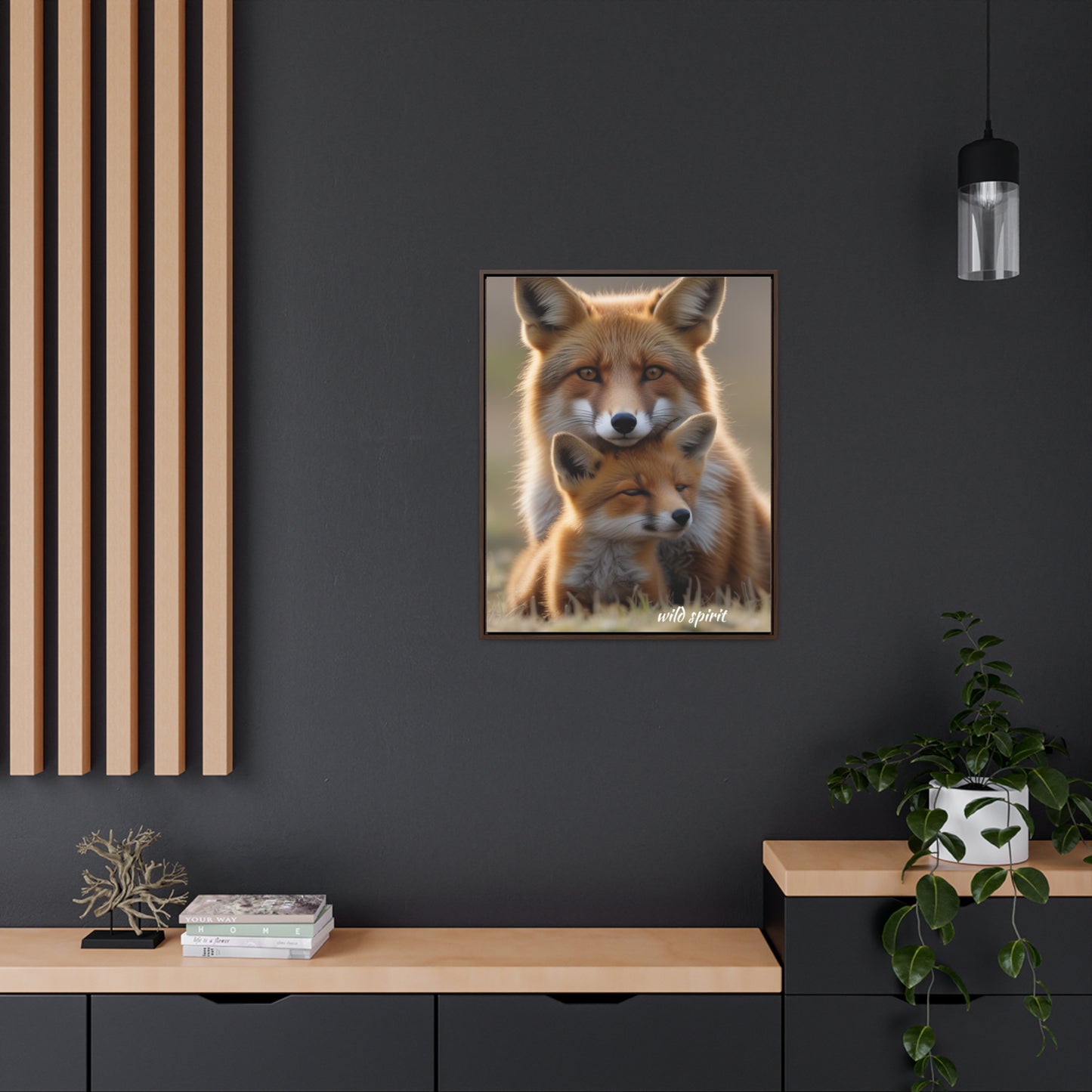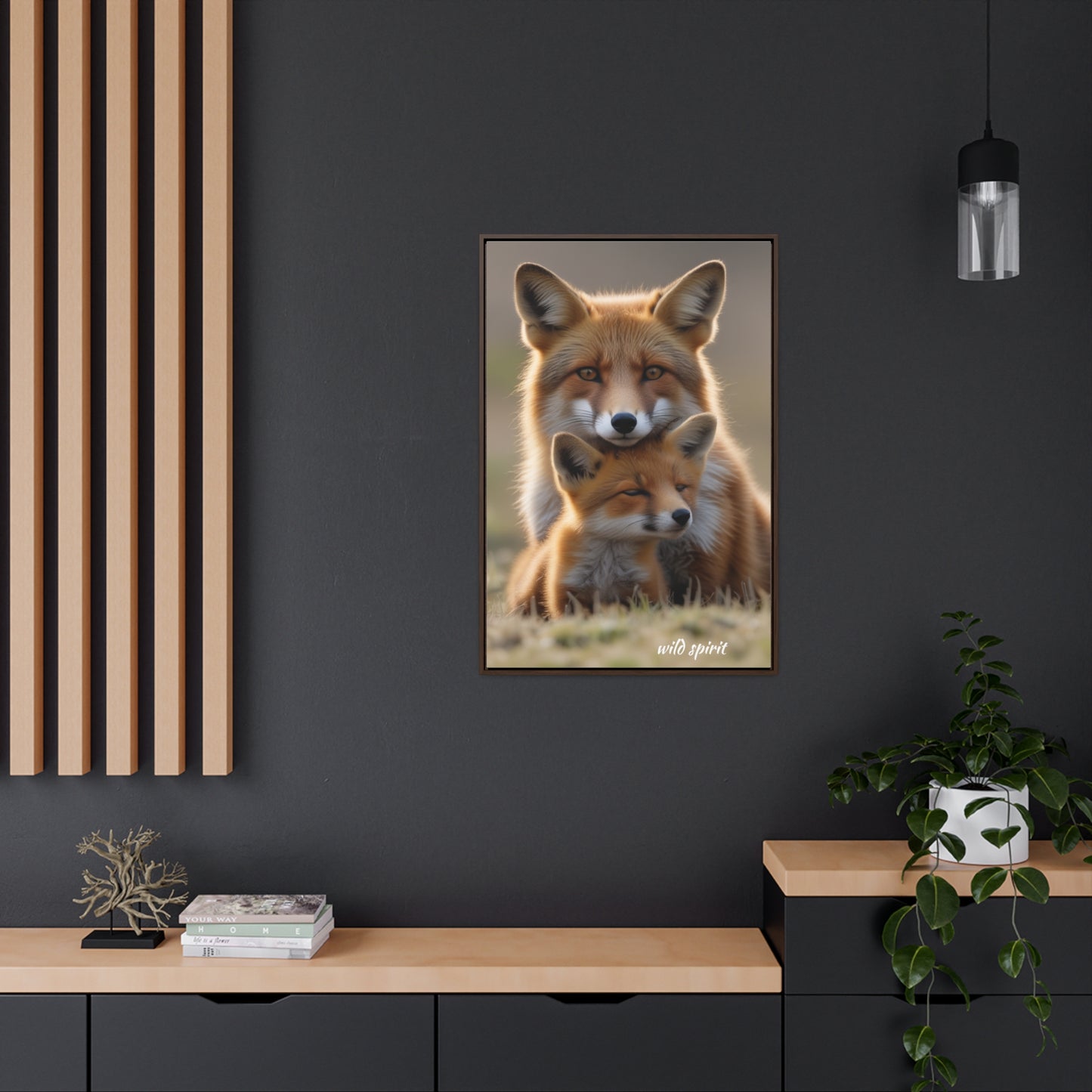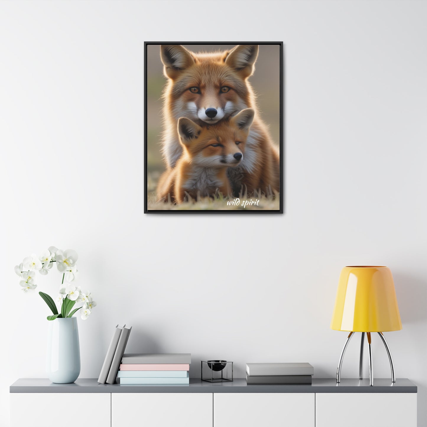 Capture the heartwarming moment of a mama fox snuggling her baby fox with this vertical frame canvas wrap. The cozy and endearing design is perfect for nursery decor or as a gift for new parents or animal lovers. Ideal for Mother's Day, baby showers, or birthdays.