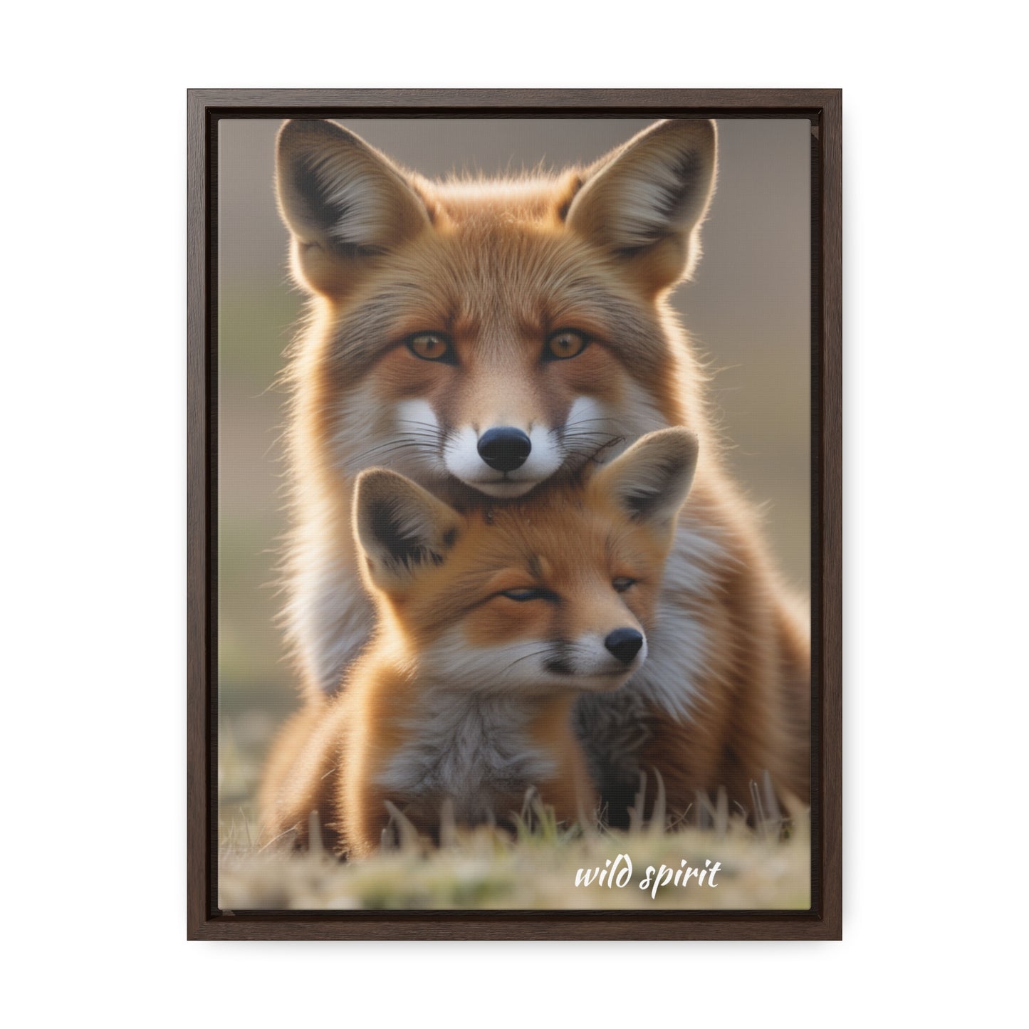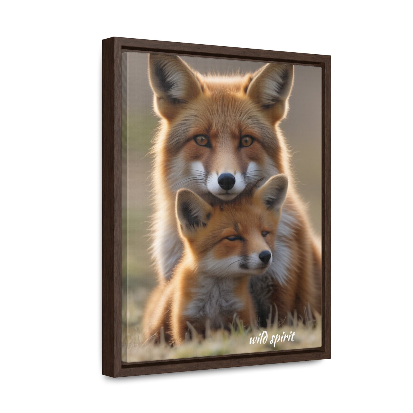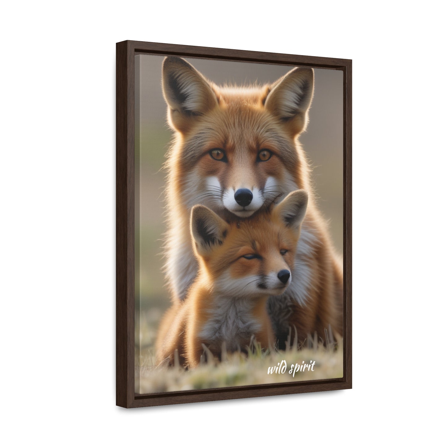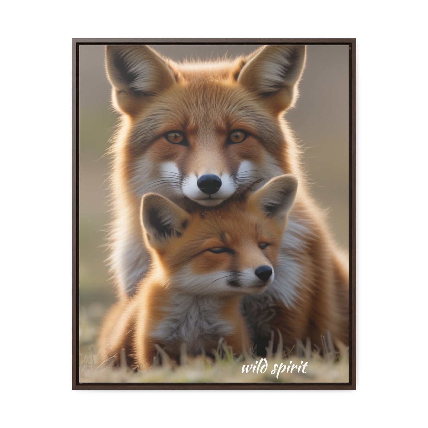 Canvas Wraps - Mama Fox and Baby Fox Snuggle Vertical Frame