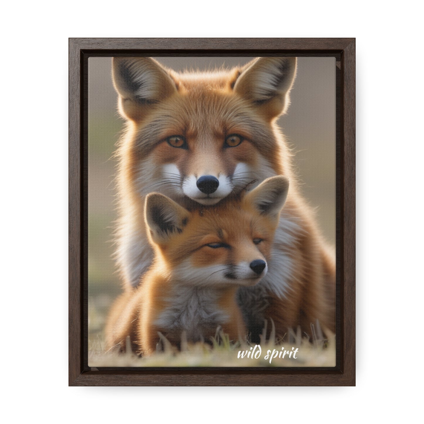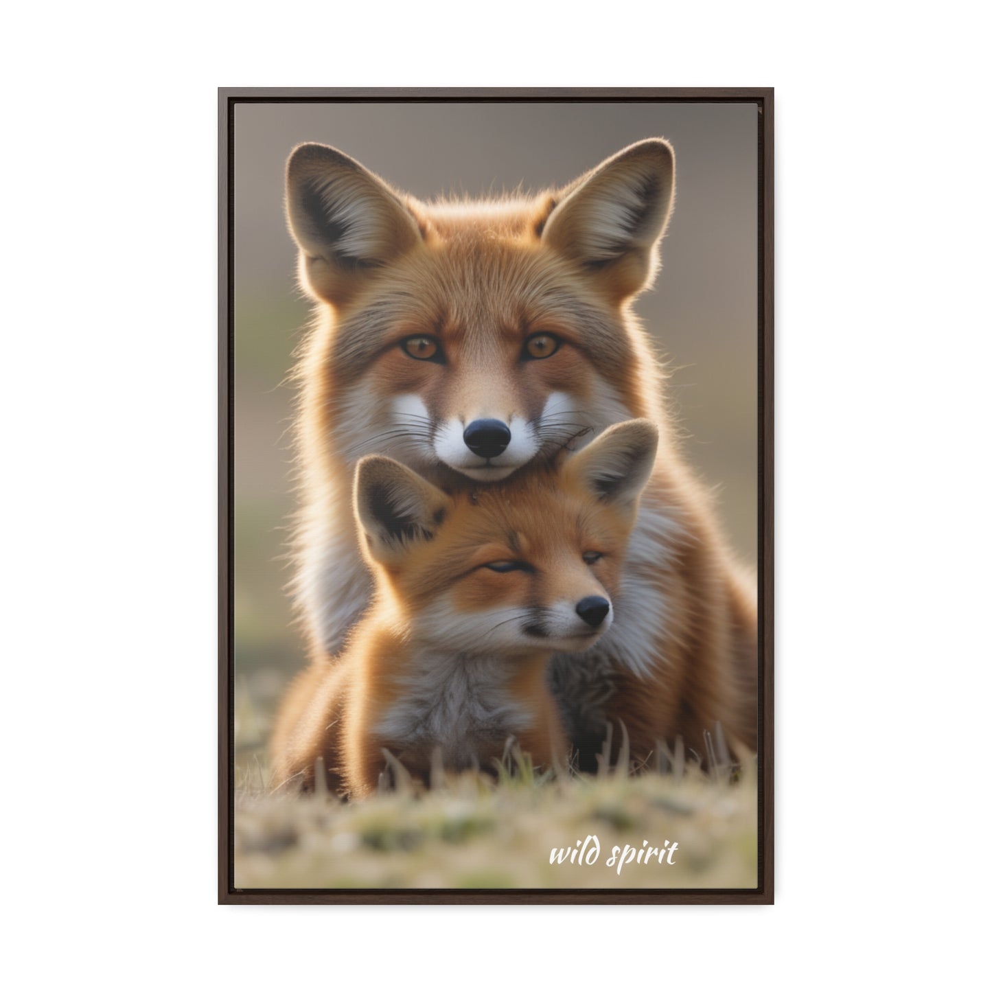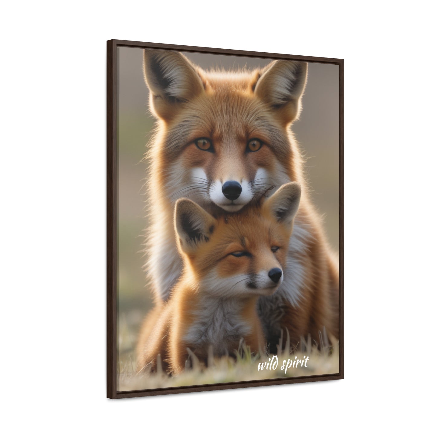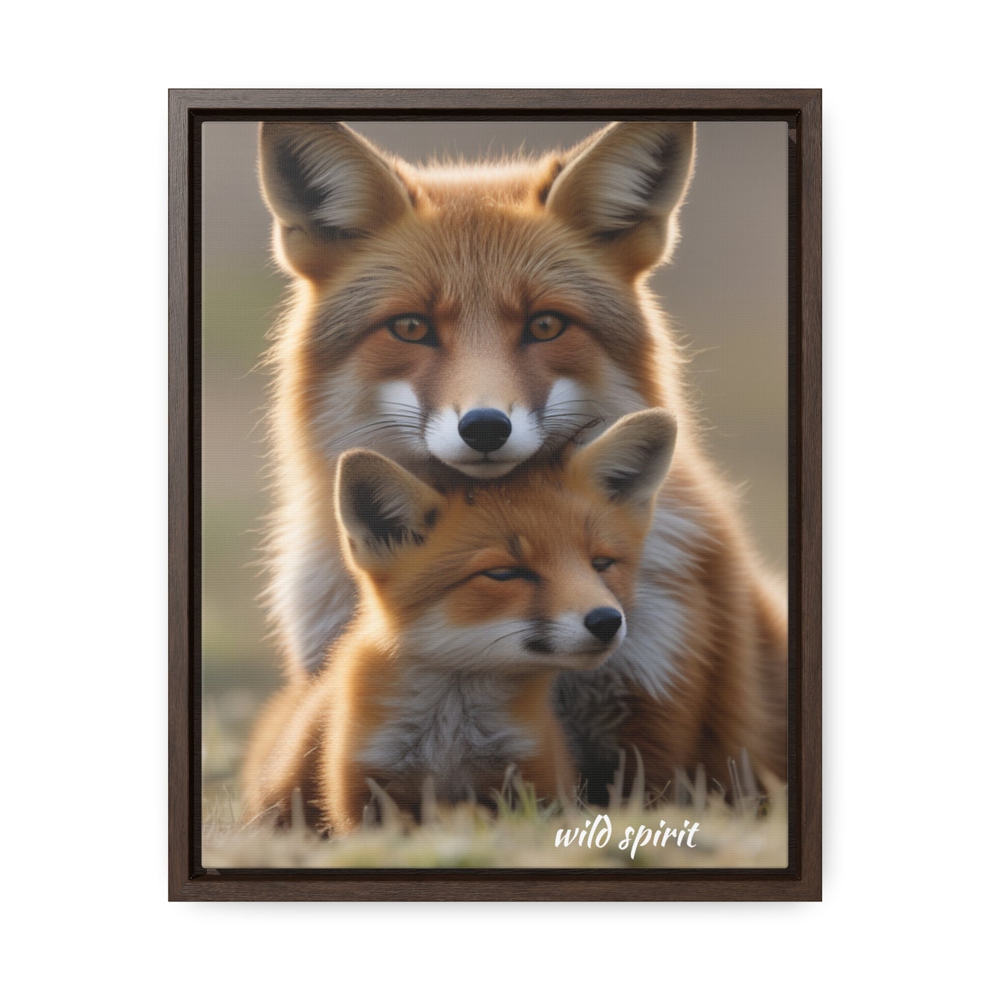 Canvas Wraps - Mama Fox and Baby Fox Snuggle Vertical Frame