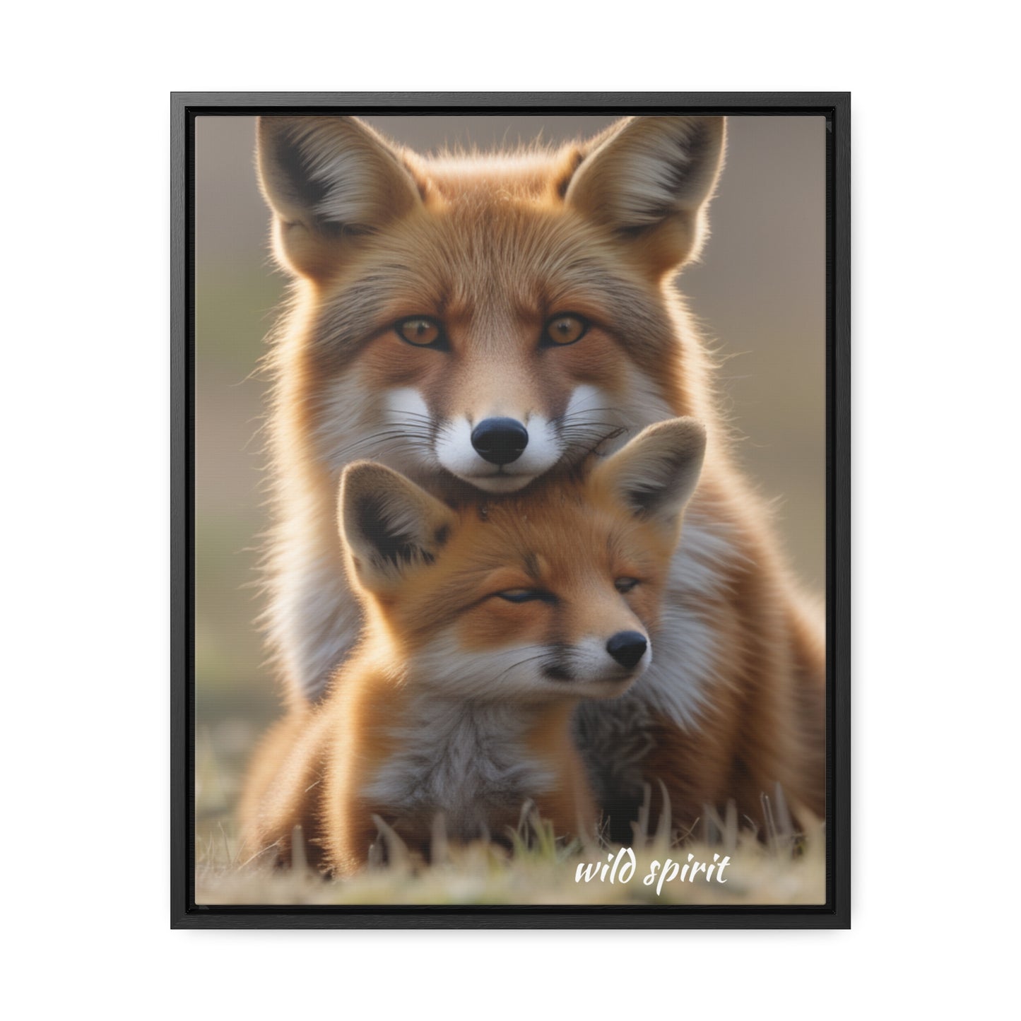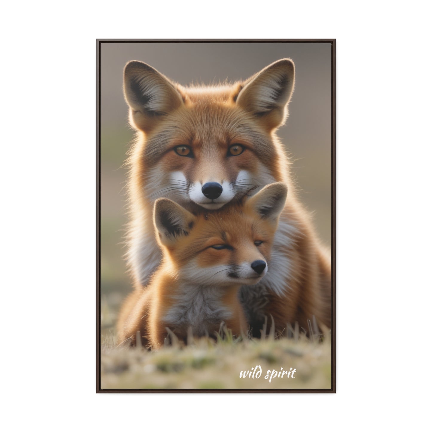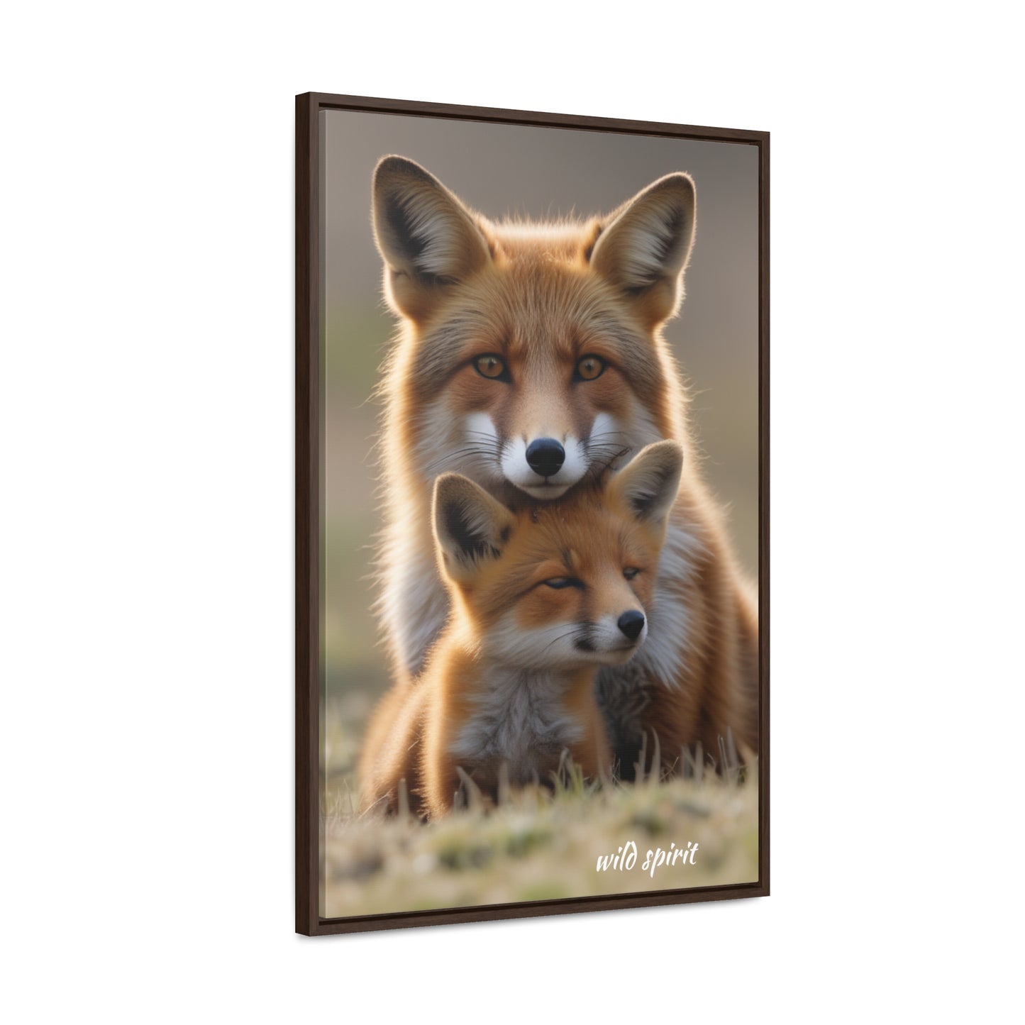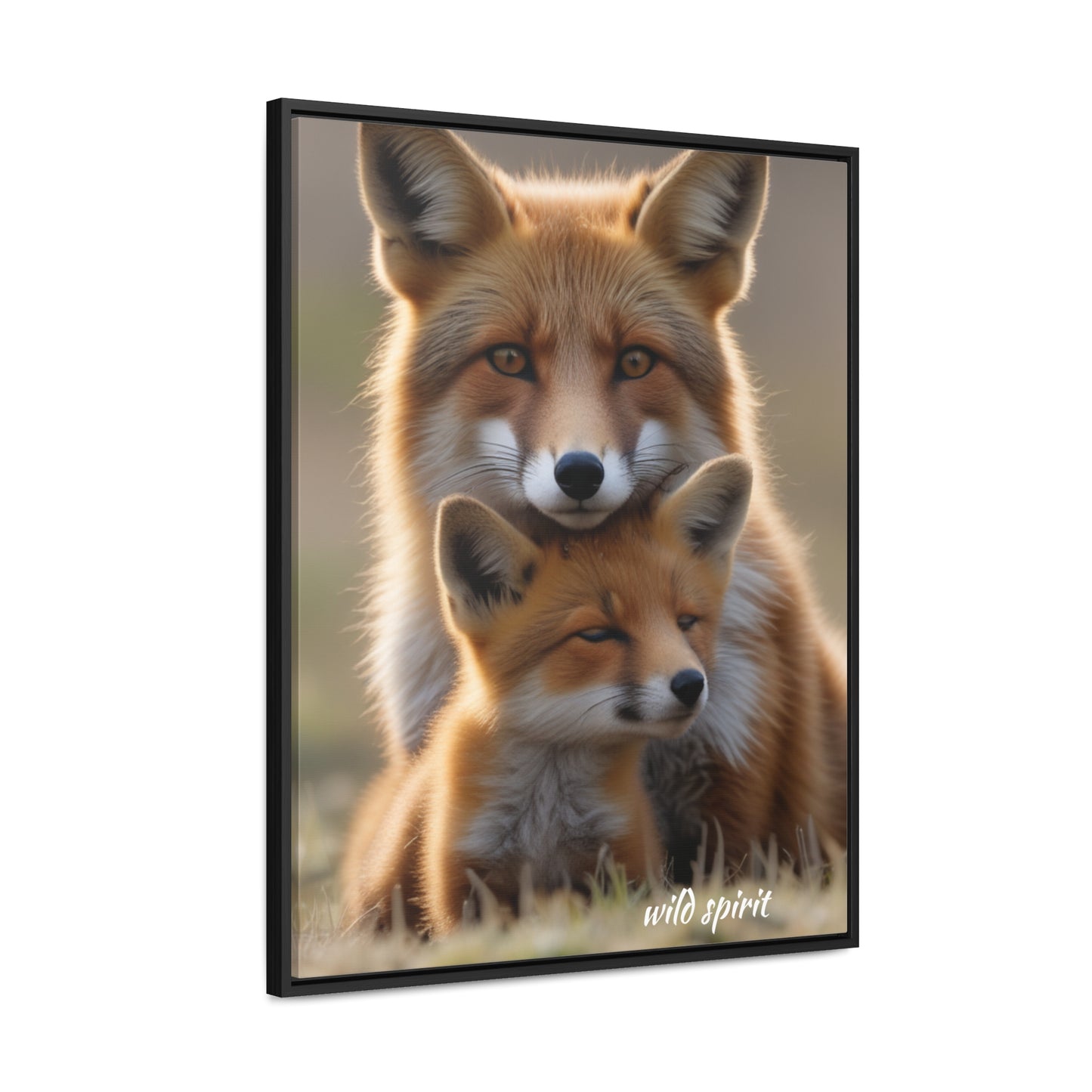 Canvas Wraps - Mama Fox and Baby Fox Snuggle Vertical Frame