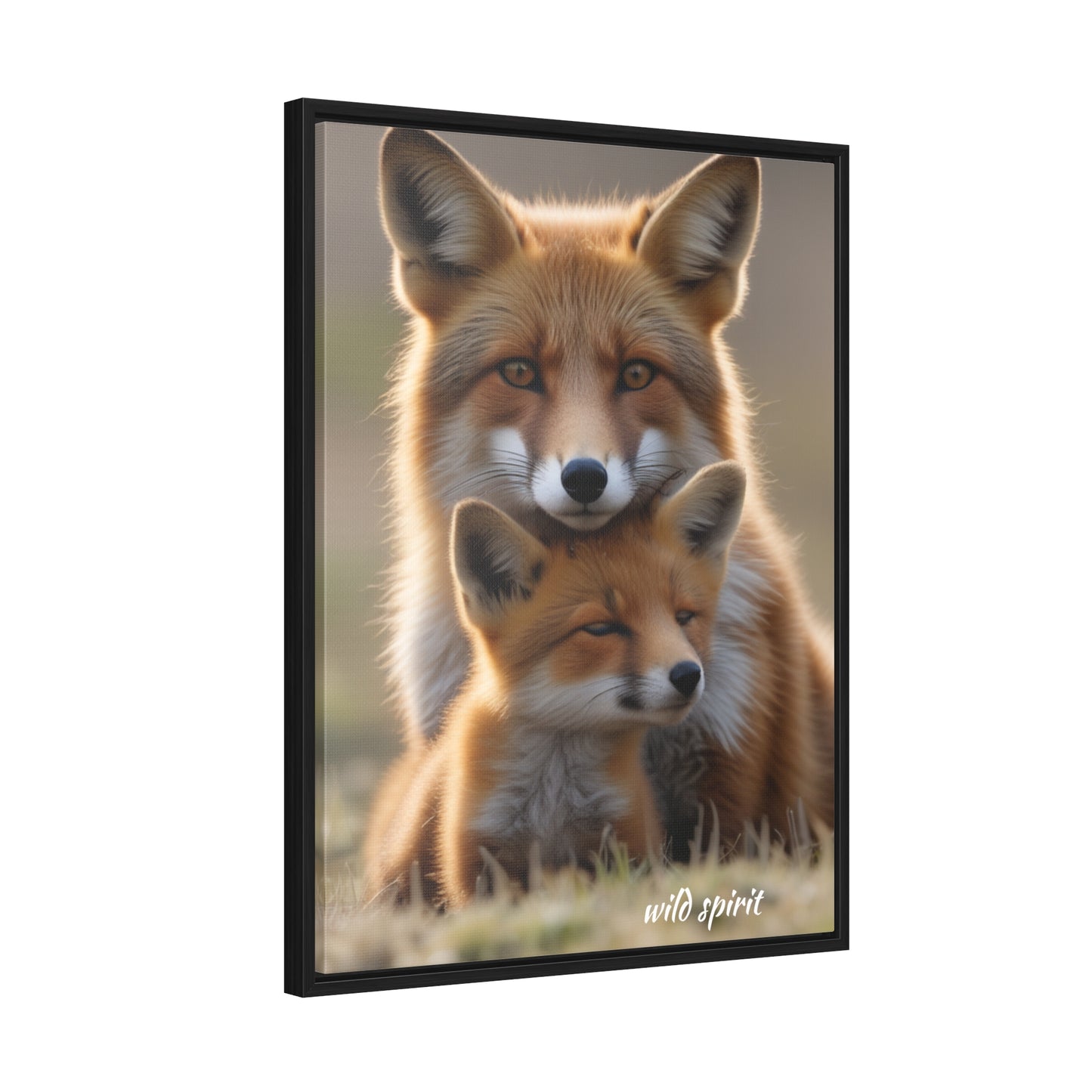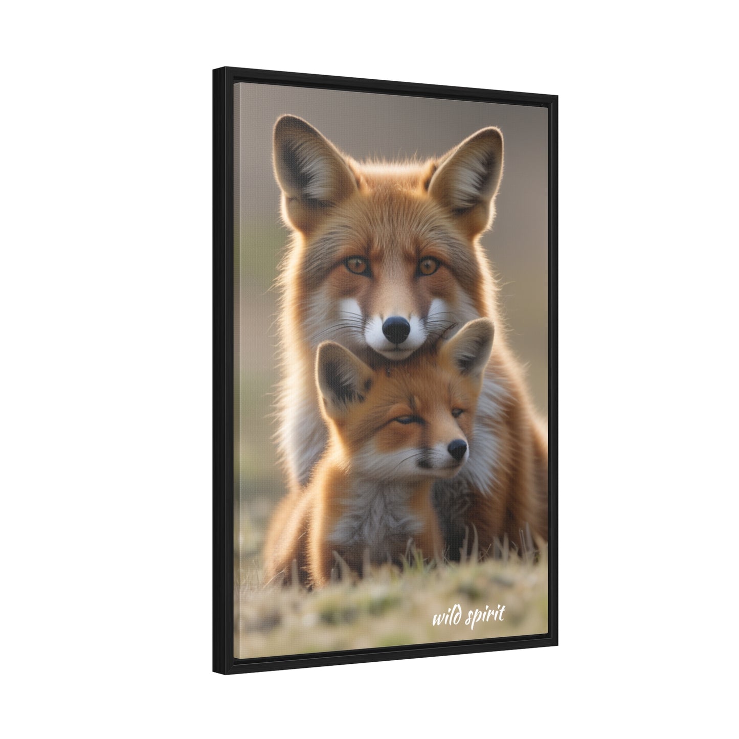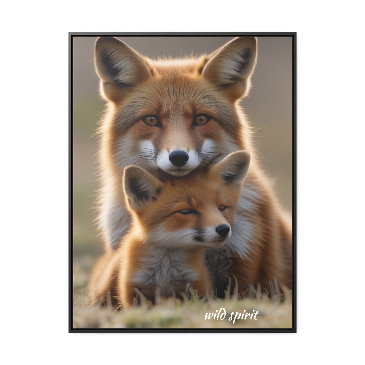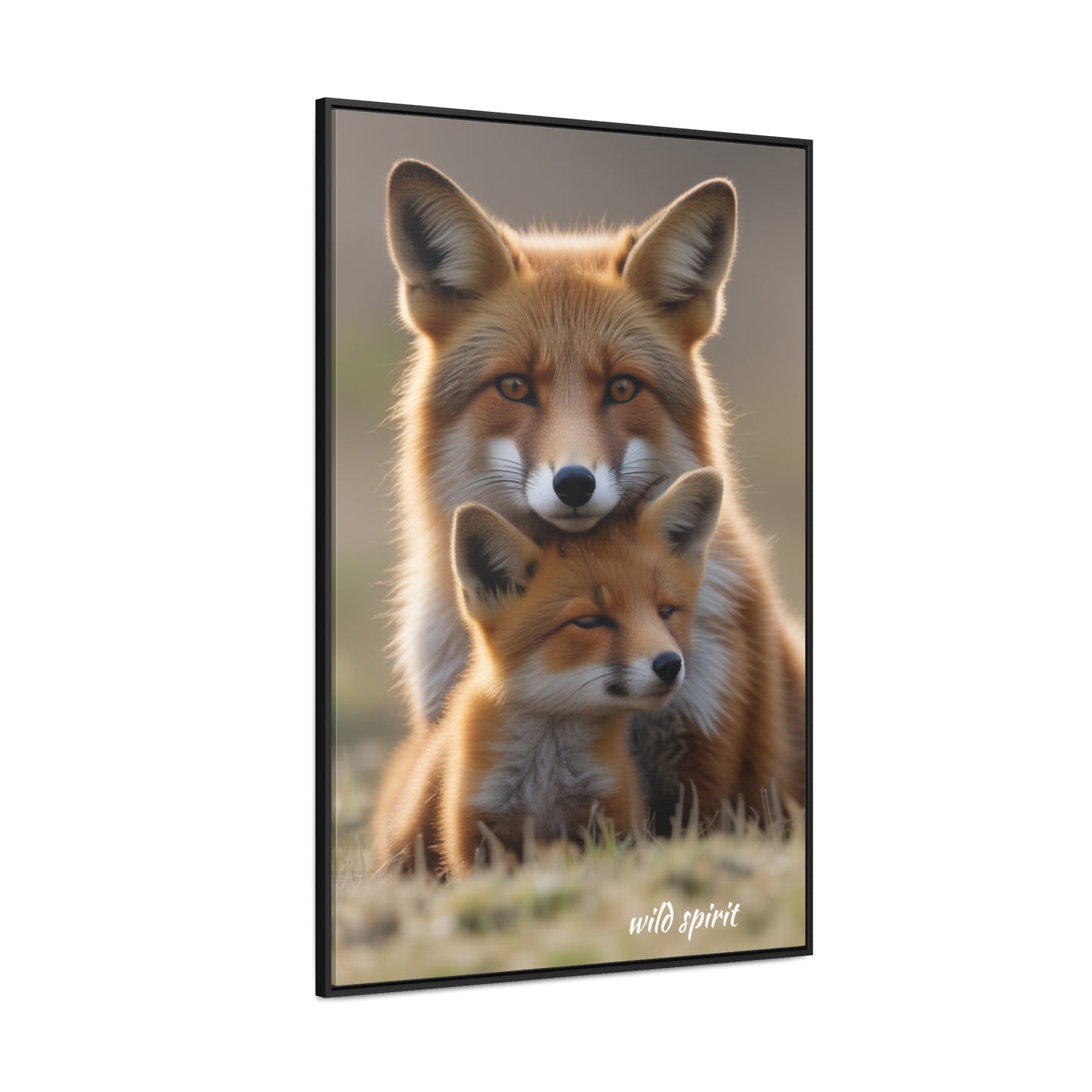 Canvas Wraps - Mama Fox and Baby Fox Snuggle Vertical Frame