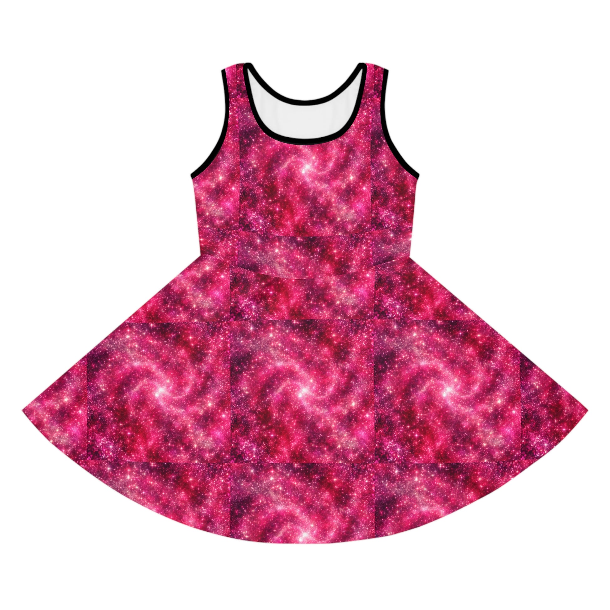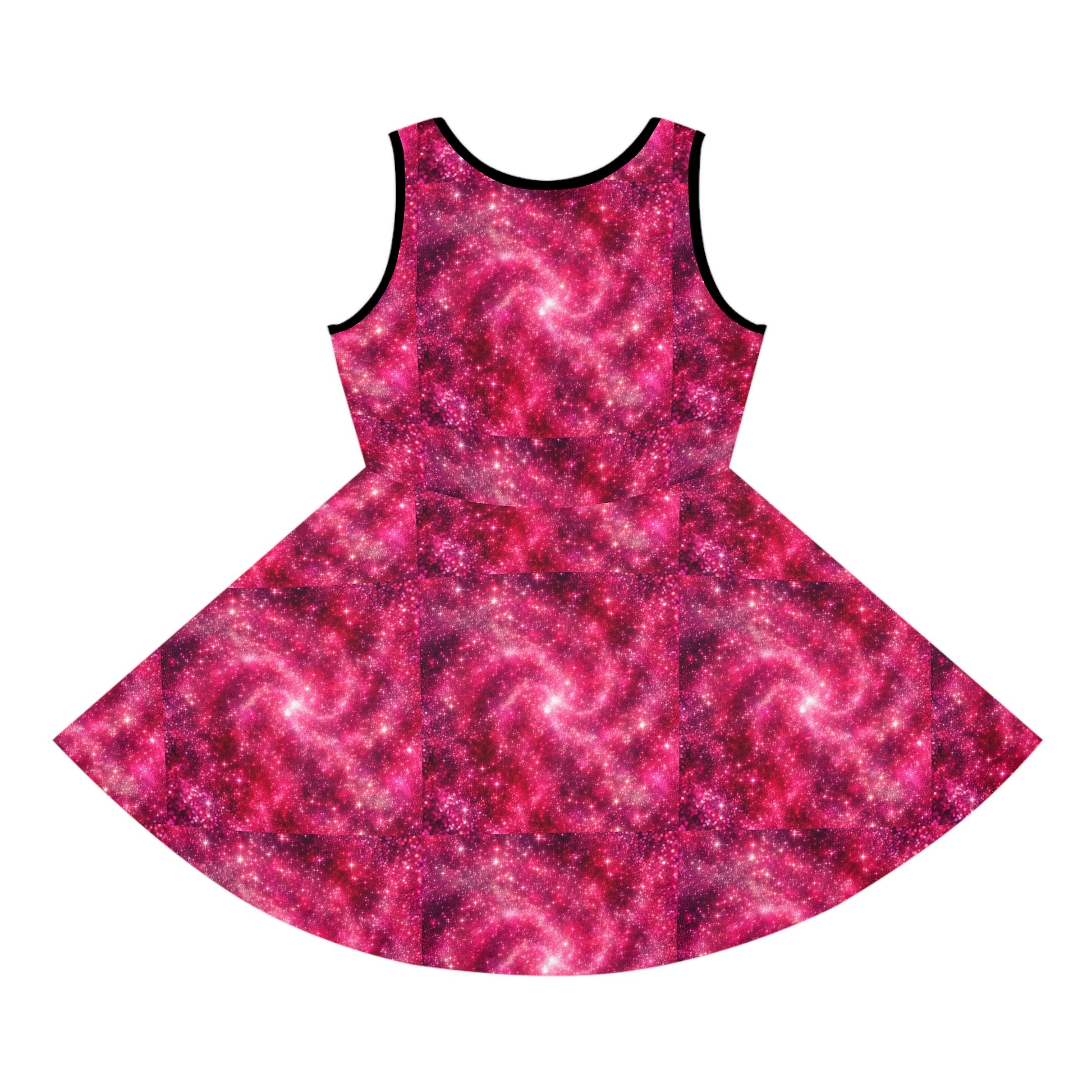 Cosmic Pink Girls' Sleeveless Sundress - Galaxy Print for Summer Fun