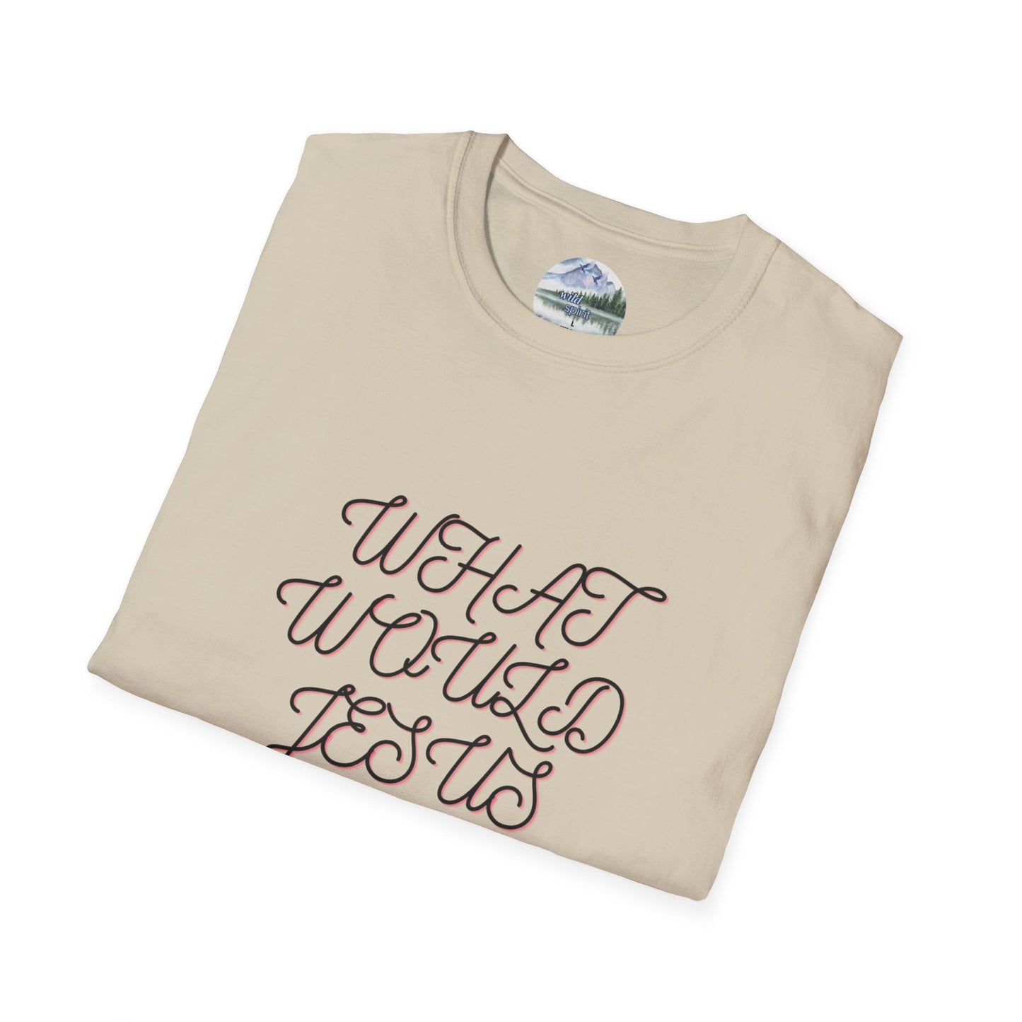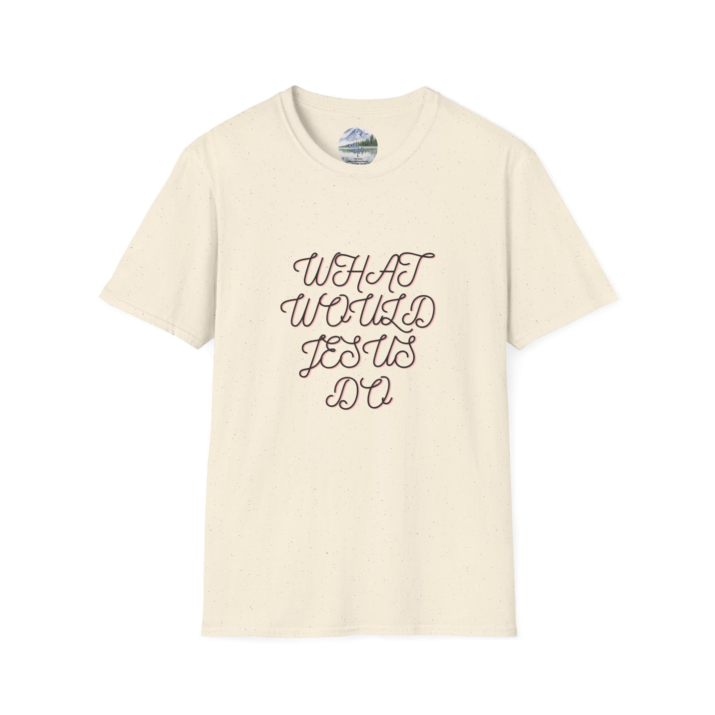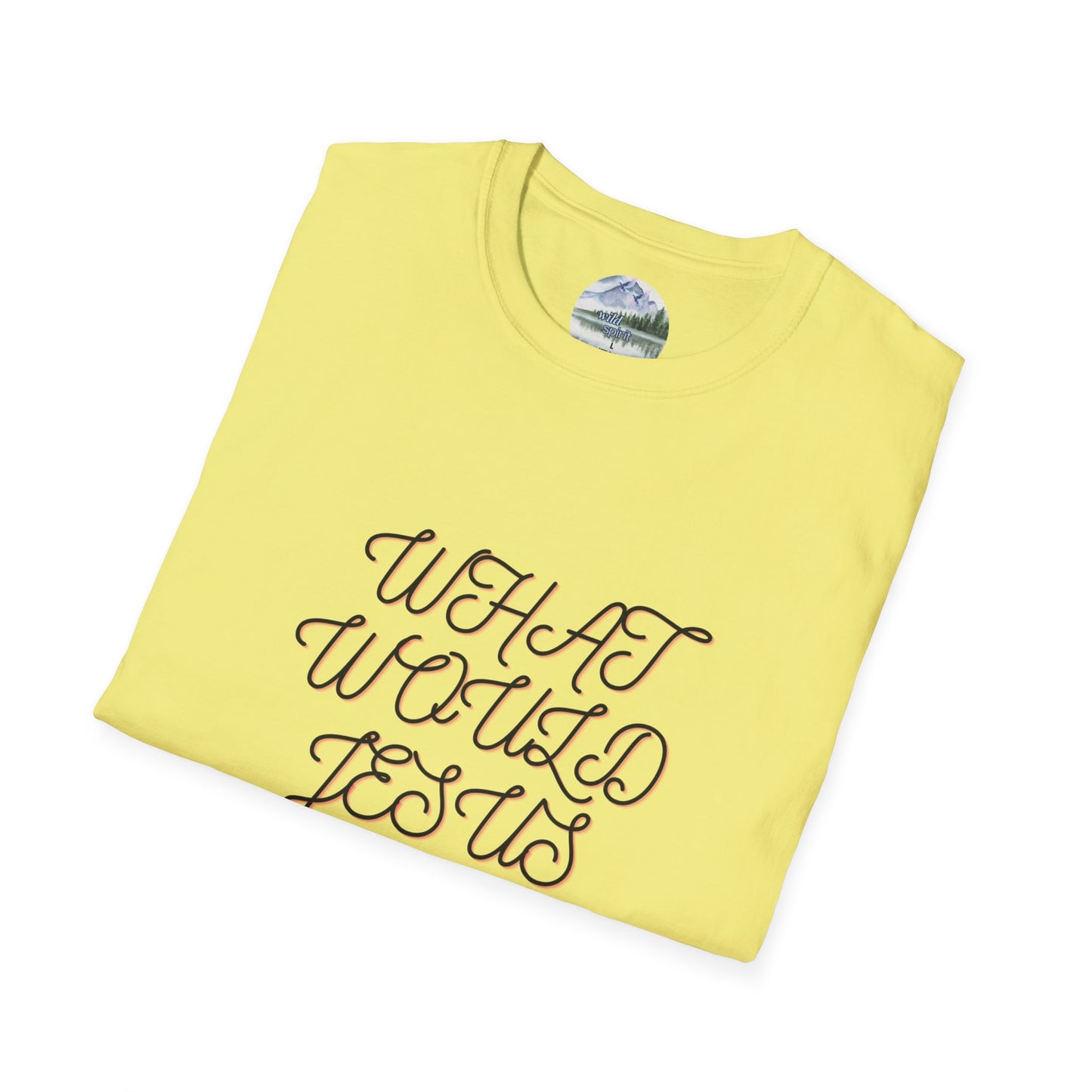 This 'What Would Jesus Do' unisex soft style t-shirt exudes a sense of faith and positivity, making it a perfect addition to the wardrobe of believers. It is suitable for adults and can be worn on various occasions, spreading a message of love and compassion. Ideal for religious holidays, church events, and everyday wear.
