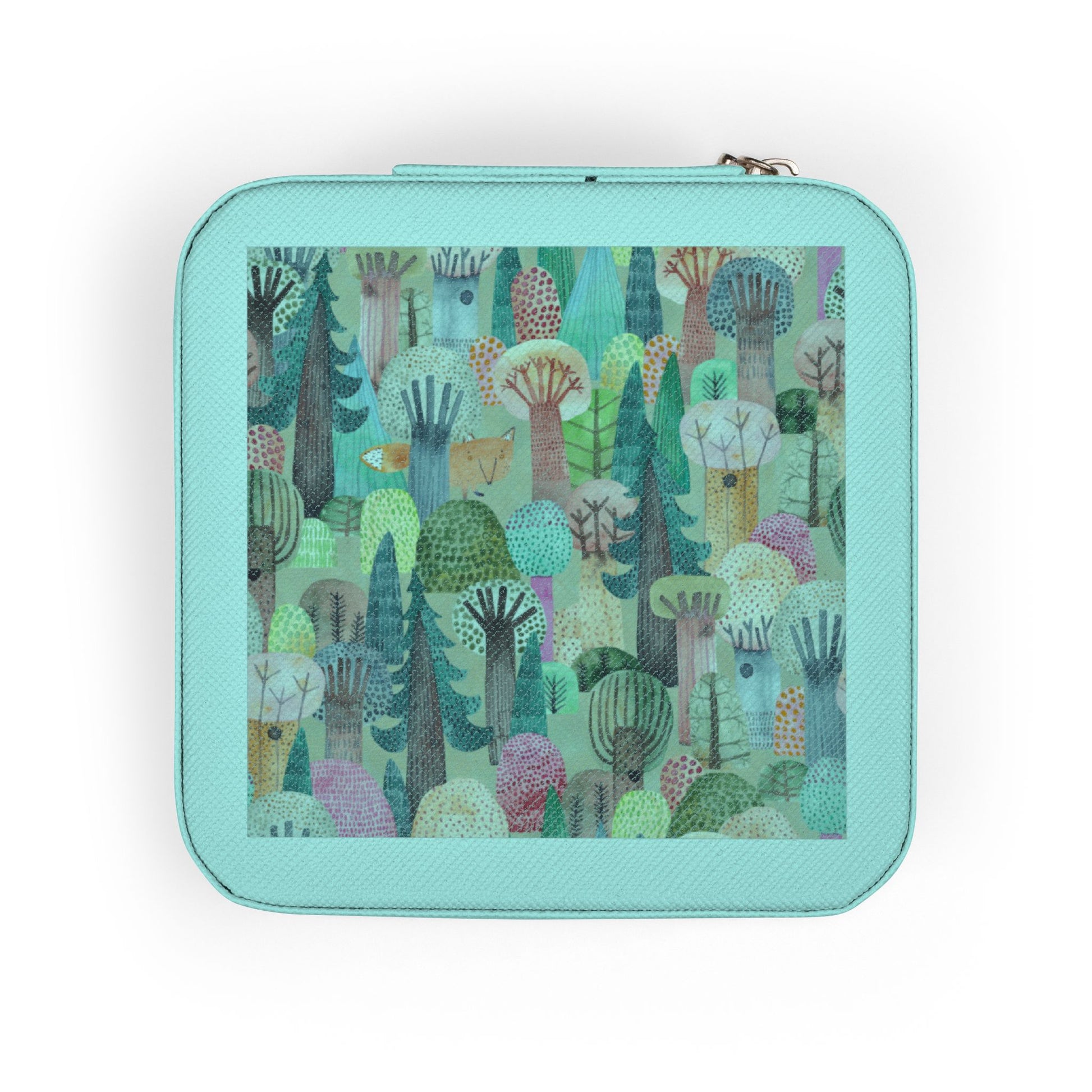 Jewelry Case — Compact Travel Jewelry Organizer with Colorful Abstract Forest Design