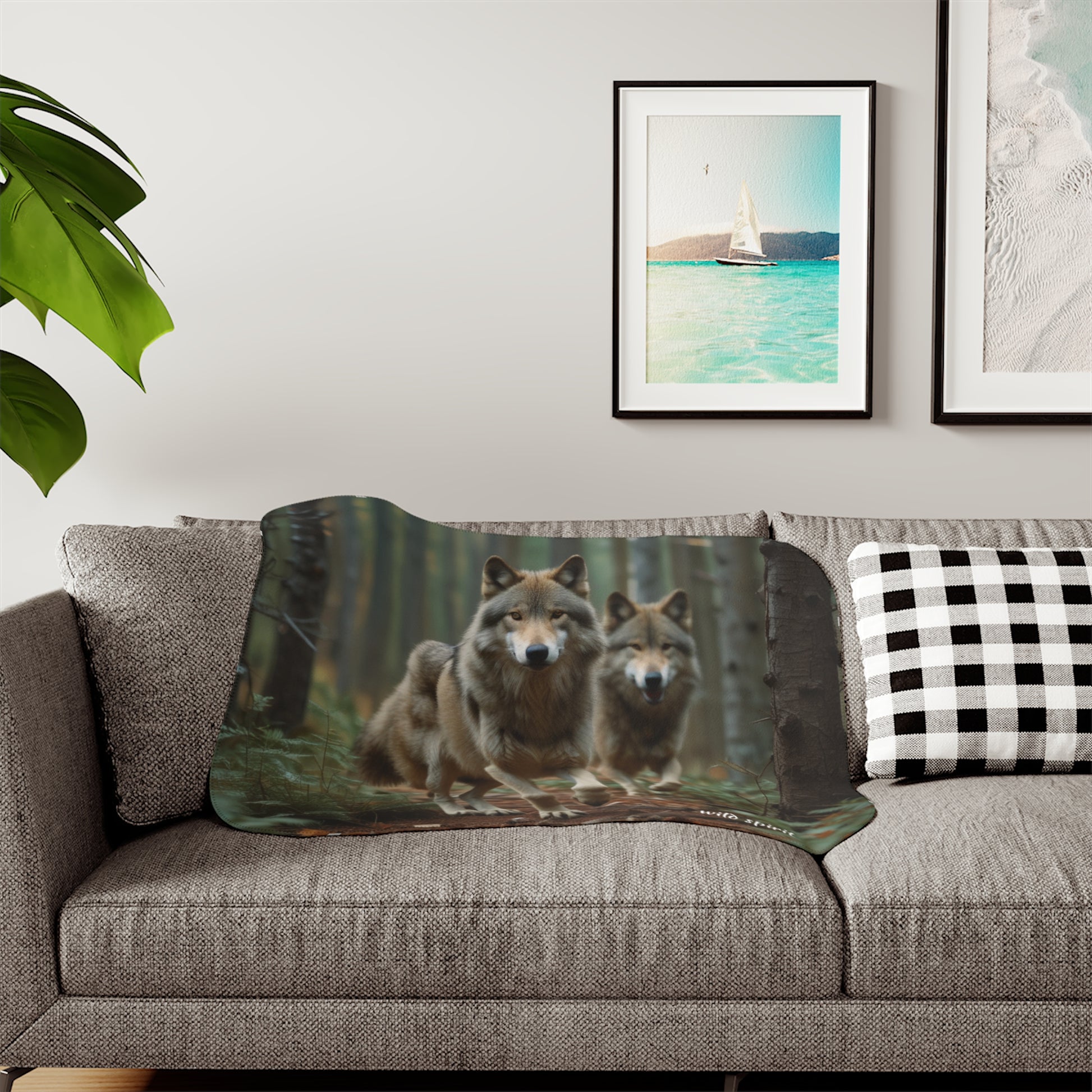 Cozy up with this sherpa blanket featuring a wolf pack design in two colors. Made of 100% polyester with a soft sherpa fleece backside, this blanket is perfect for snuggling on cold nights. Ideal for wolf lovers and nature enthusiasts, it's great for gifting on birthdays, holidays, or special occasions.