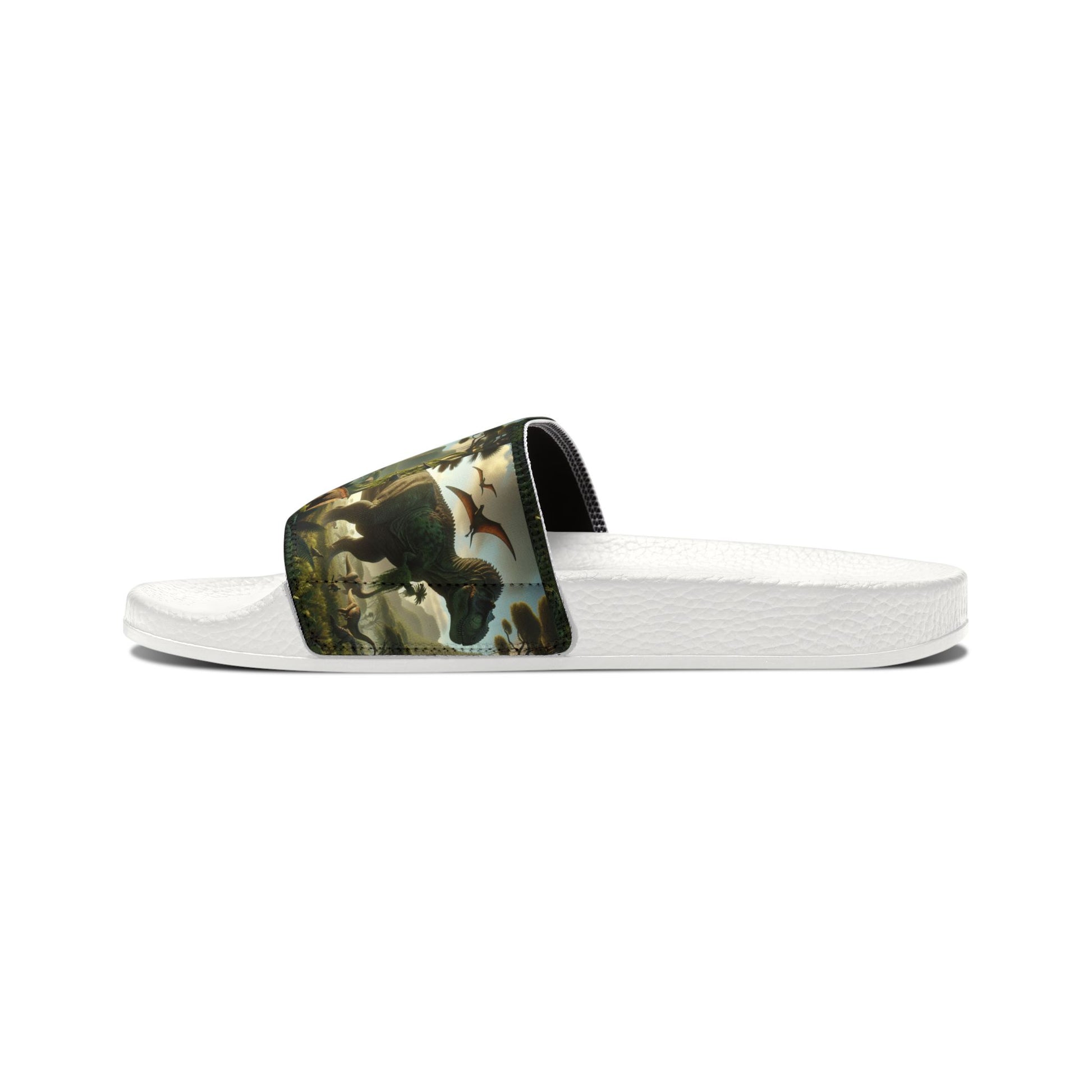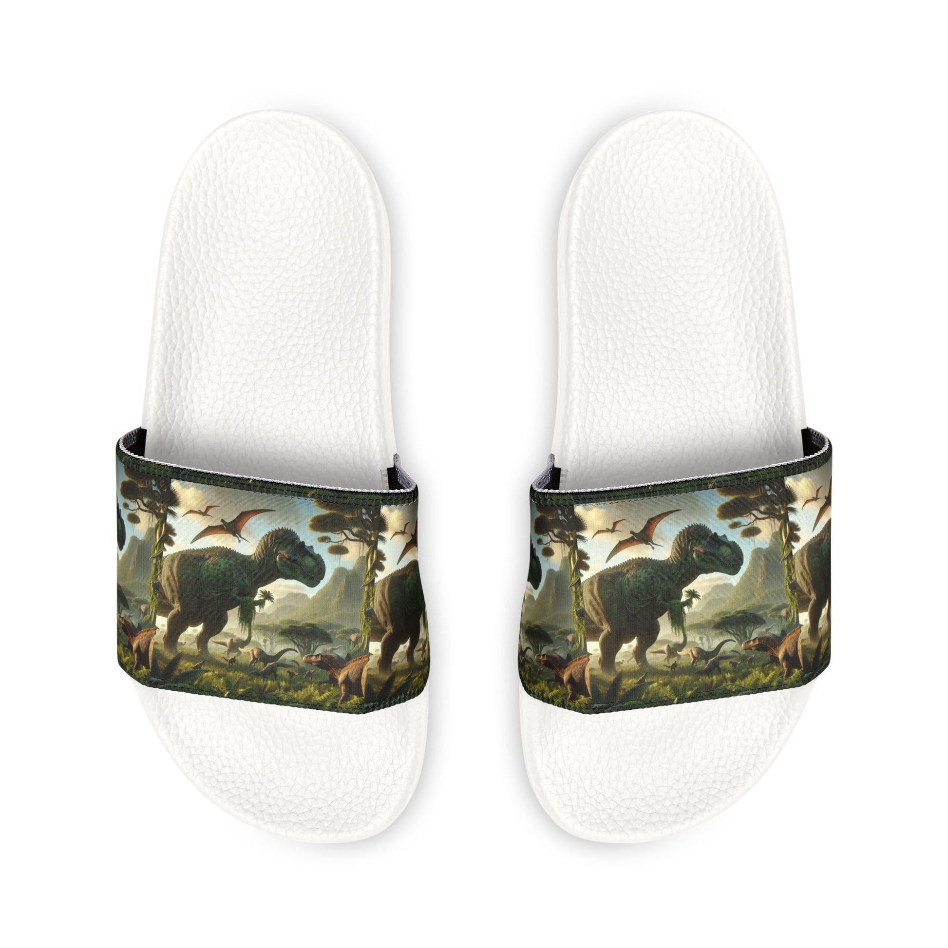 Youth Dinosaur Print Sandals - Removable Strap Slip-Ons for Summer Fun